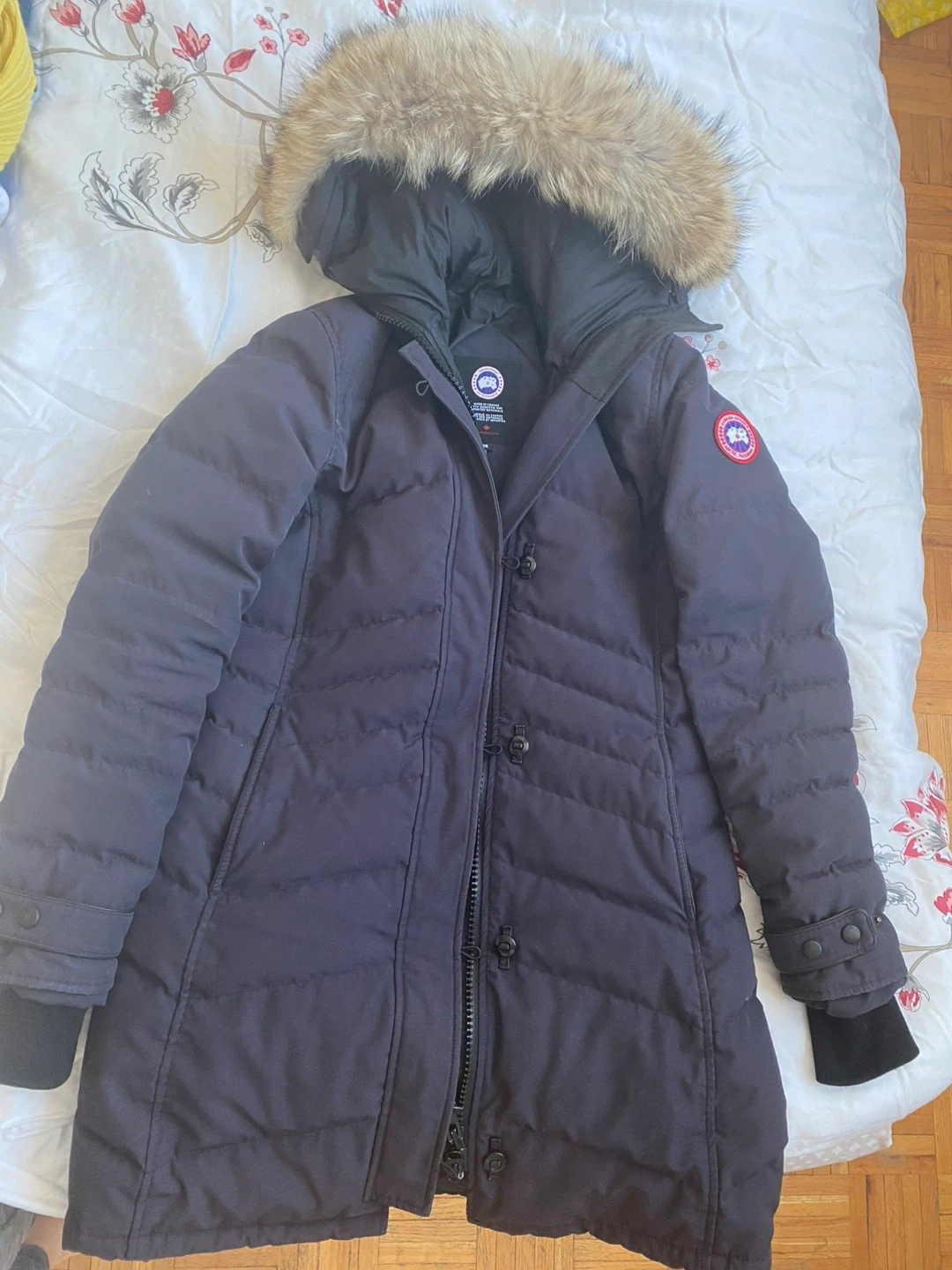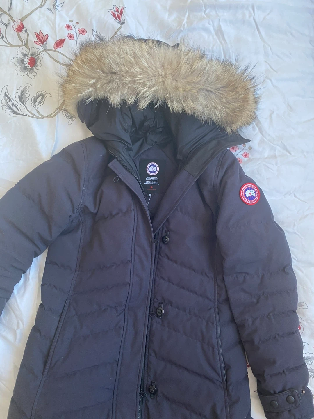 11Selling a Canada Goose down parka in navy! It's in great condition and ready to keep you warm this winter. - Brand: Canada Goose - Size: M - Colour: Navy - Style: 2090L - Material: Down & Feathers - Real coyote fur