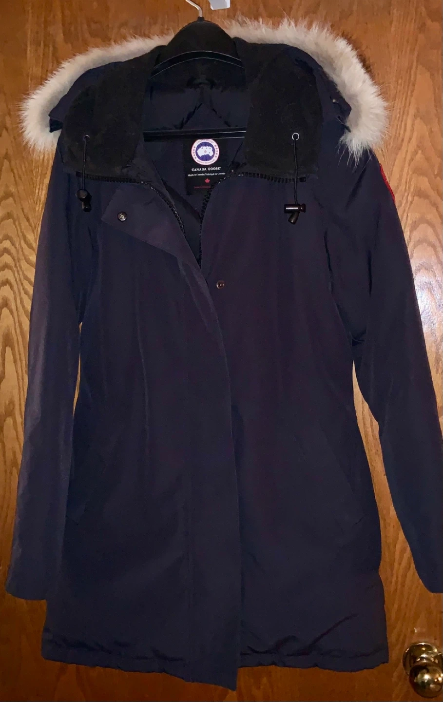 Selling a Canada Goose parka in great condition! It's a stylish and warm jacket perfect for the Canadian winter. The jacket features a fur-trimmed hood for extra protection against the cold. Gently used Canada Goose Victoria Parka in Navy Blue, size M. Mid-thigh length with removable fur hood. Made with Arctic-Tech fabric and 625-fill-power white duck down insulation. TEI 3 for -10°C to -20°C warmth. One snap closure on the back vent flap is loose, but doesn't affect function.