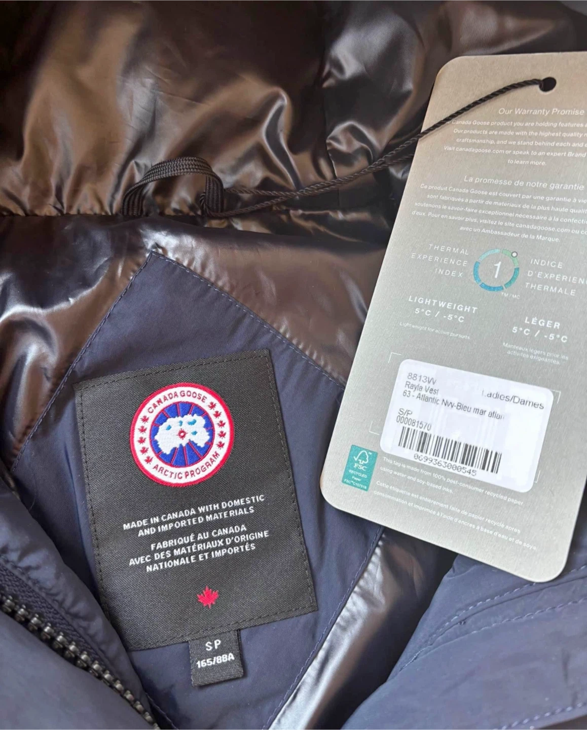 Rayla Vest The Rayla Vest—inspired by our best-selling Angel Chen style. This multi-season staple is crafted in Ventera - a luxurious, water-repellent fabric with a soft-to-the-touch finish. Retail :$795+tax Size: small Color: Navy Brand new with tag