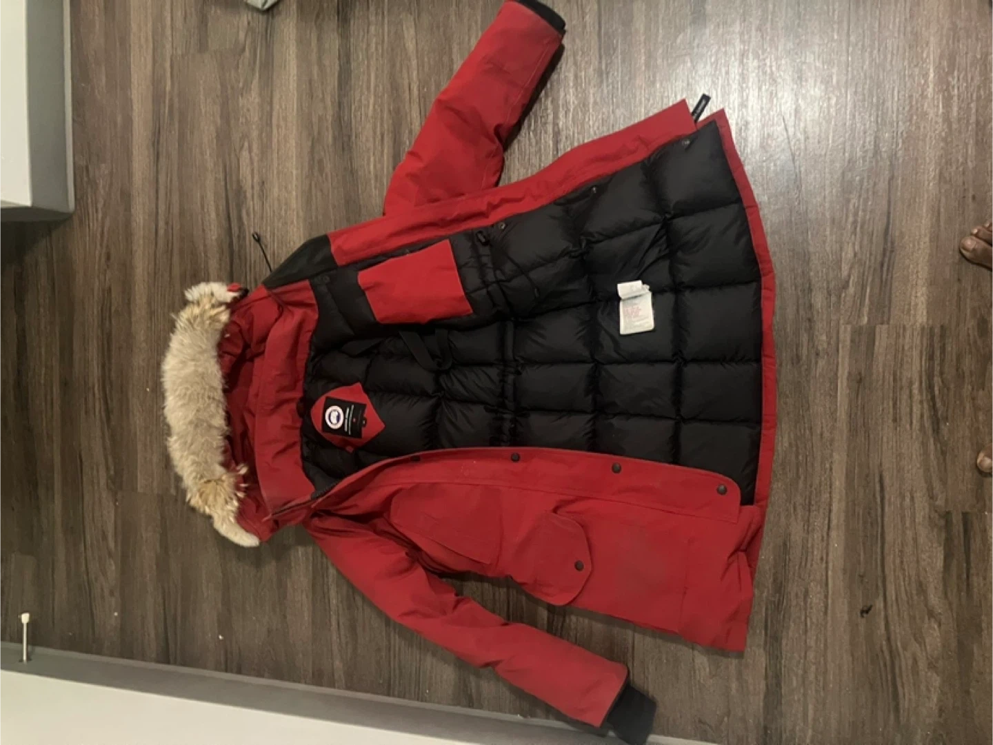 15Selling a Canada Goose winter parka in red. It's a size S/P. Perfect for the cold Canadian winters!