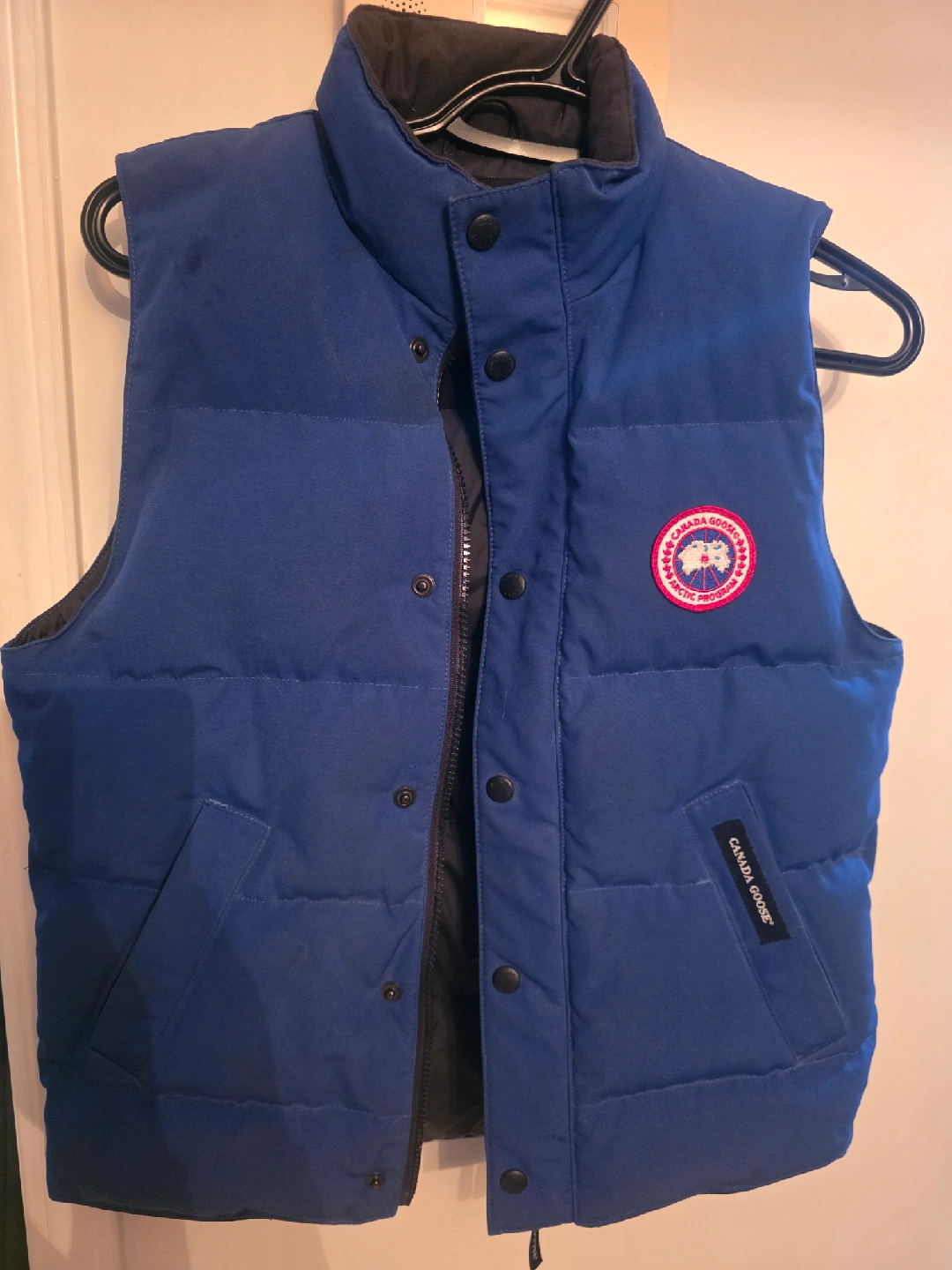 Canada Goose vest in great condition! Size L (14-16). Can fit Small Women as well. Perfect for layering during the cooler months. The iconic Arctic Program logo is displayed on the front.