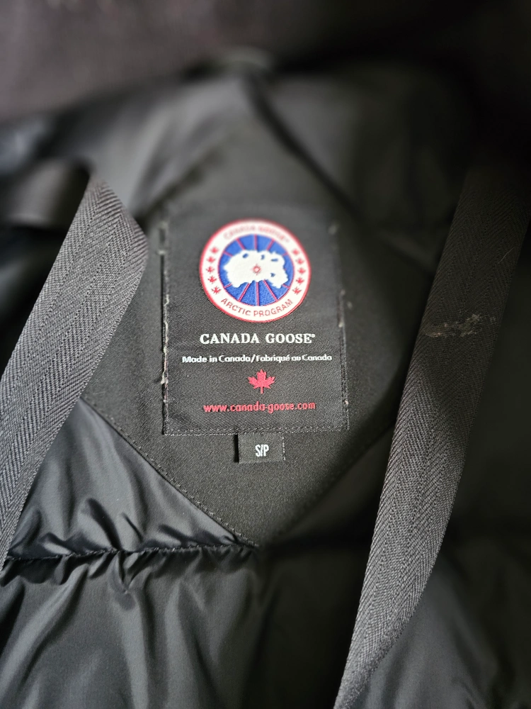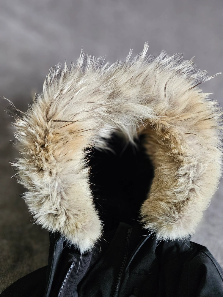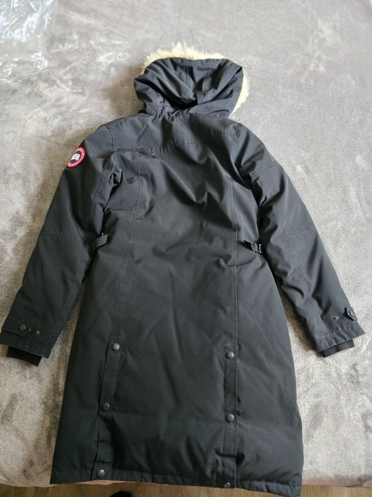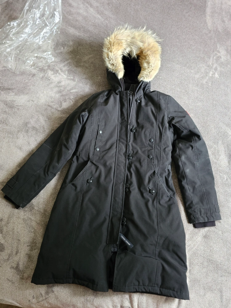Size : S Color : Black Disc Color: Classic Disc Original fur trim included 100% Authentic Canada Goose, bought online on Canada Goose website. Can show proof of purchase. Women's long black parka. Features a fur-trimmed hood and a variety of pockets. Made in Canada. Excellent condition. Description Long and slim-fitting, the Kensington Parka is equally appropriate for strolling a city street or hiking a snowy trail. With smart military buttons, waist-cinching adjustable straps, and recessed rib knit cuffs, the Kensington is modern take on a traditional style.