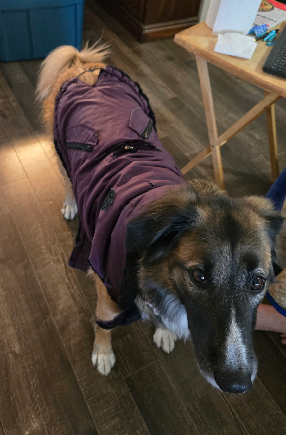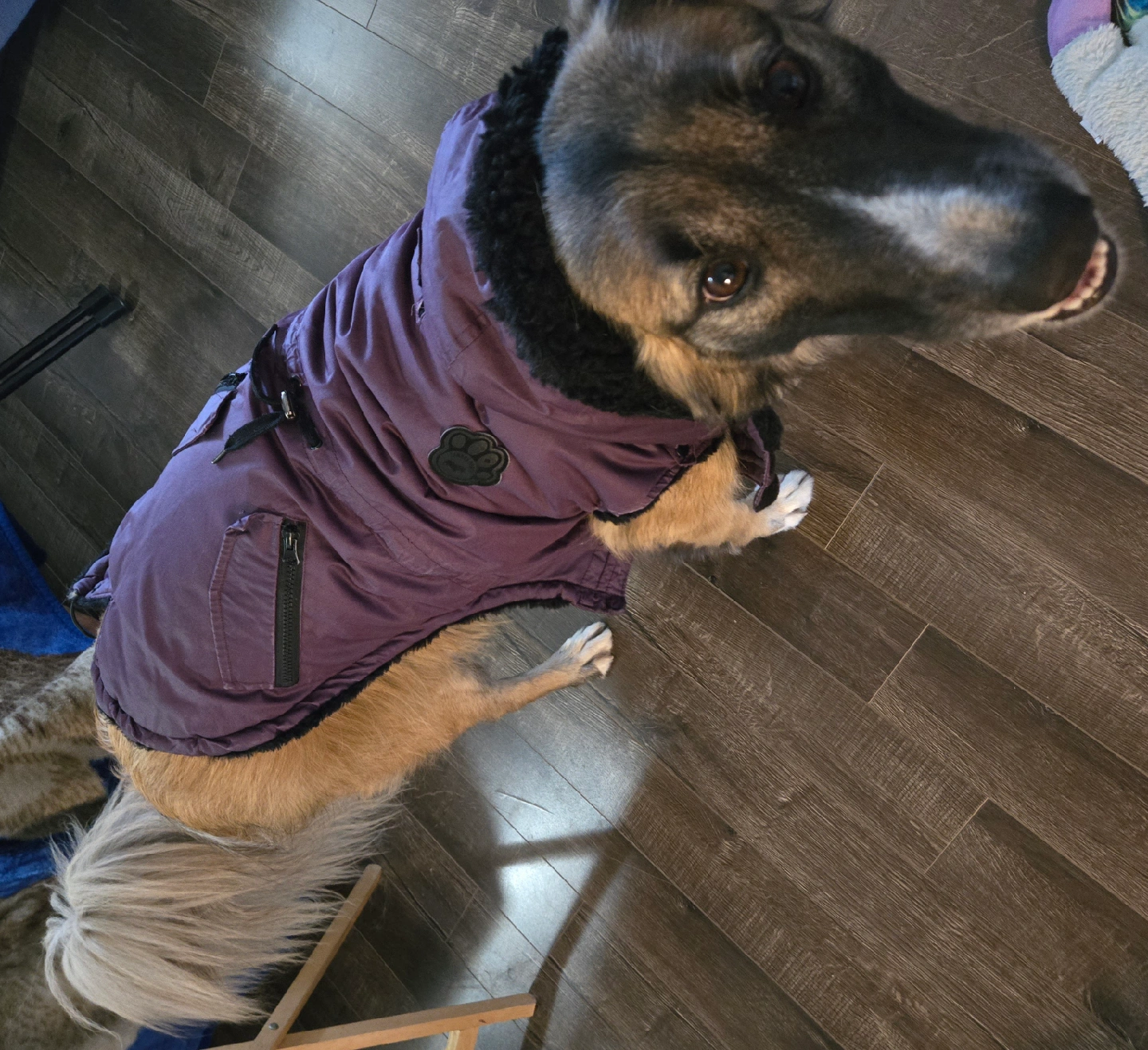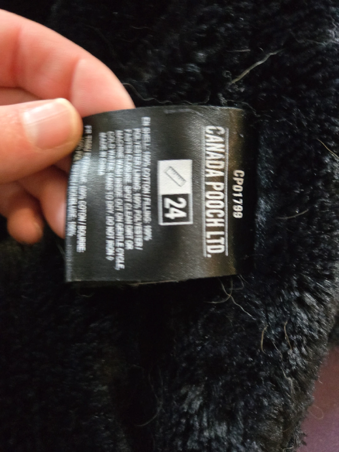 Keep your furry friend warm with this Canada Pooch dog coat! It's a stylish and functional way to protect your dog from the elements. The coat is size 24.