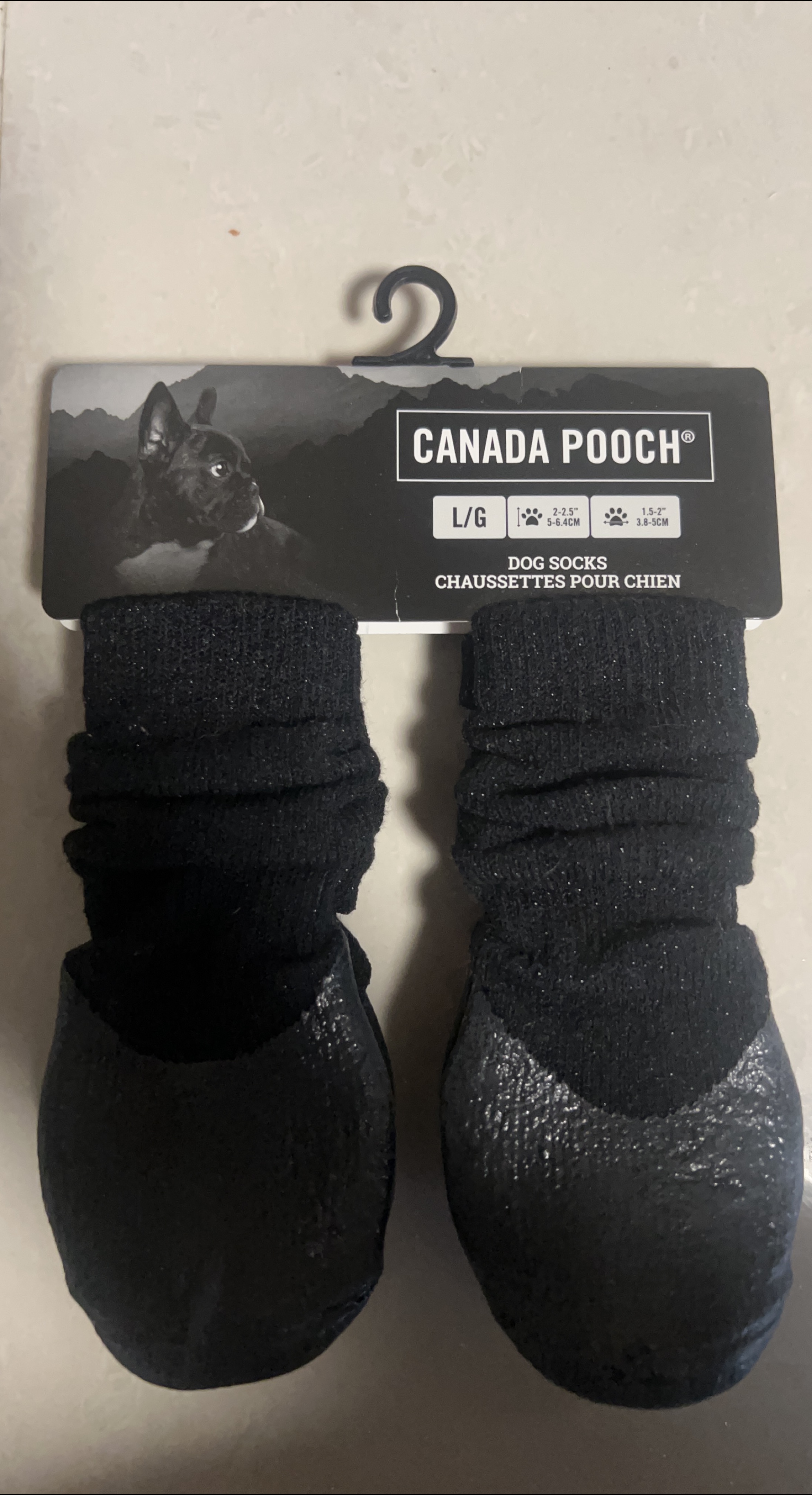 Keep your furry friend's paws warm and protected with these Canada Pooch dog socks! They are size L/G, suitable for paws measuring 2-2.5" (5-6.4cm) in width and 1.5-2" (3.8-5cm) in length