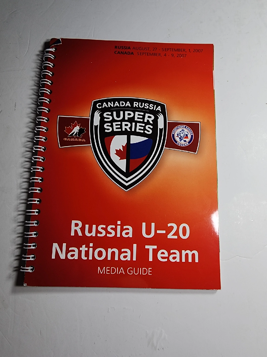 Selling a media guide from the Canada Russia Super Series in 2007. It includes team rosters and game schedules from the series, a great piece for any hockey fan or collector of sports memorabilia!
