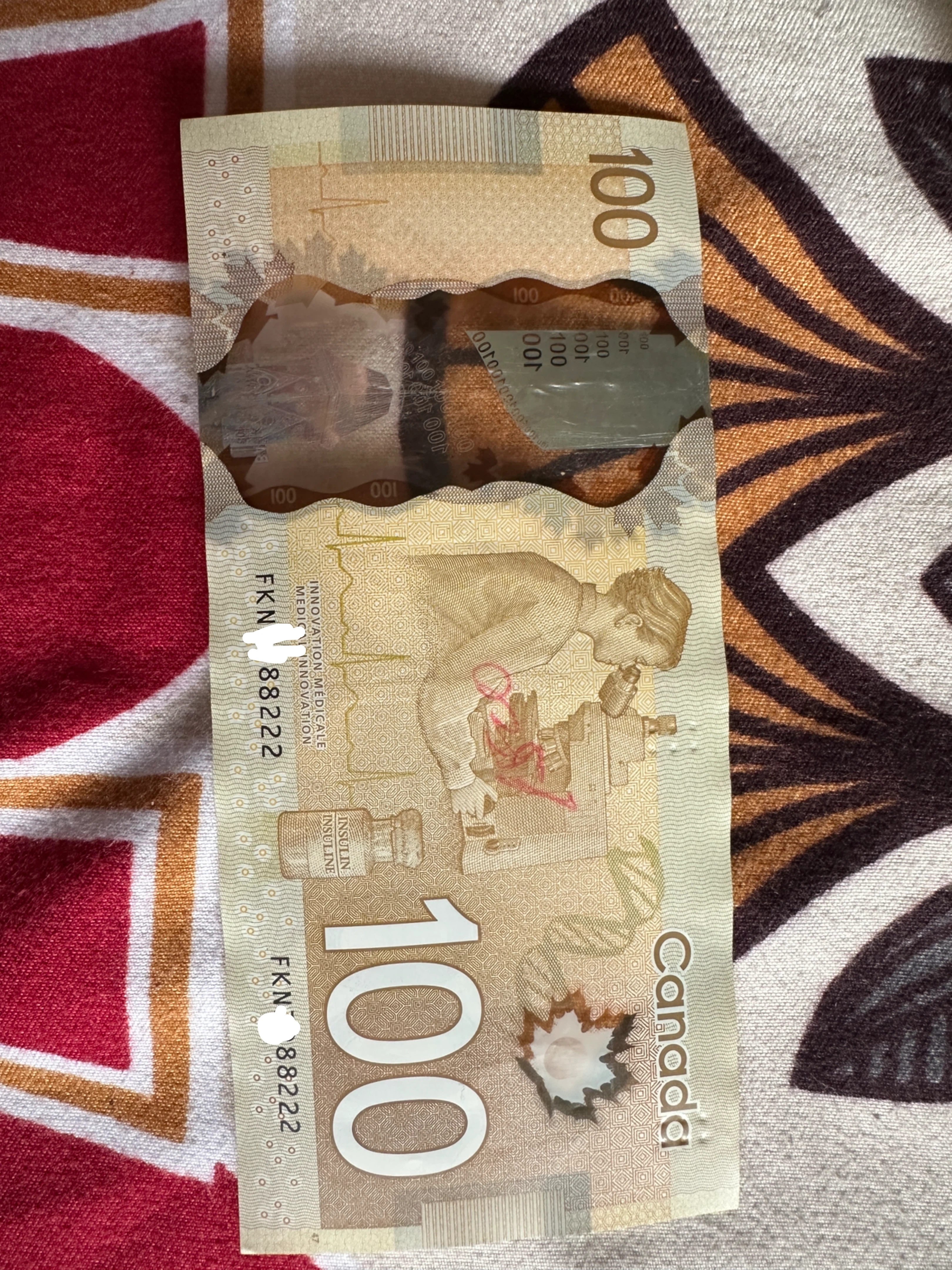 10Selling a Canadian $100 bill with unique number FKN**88222.