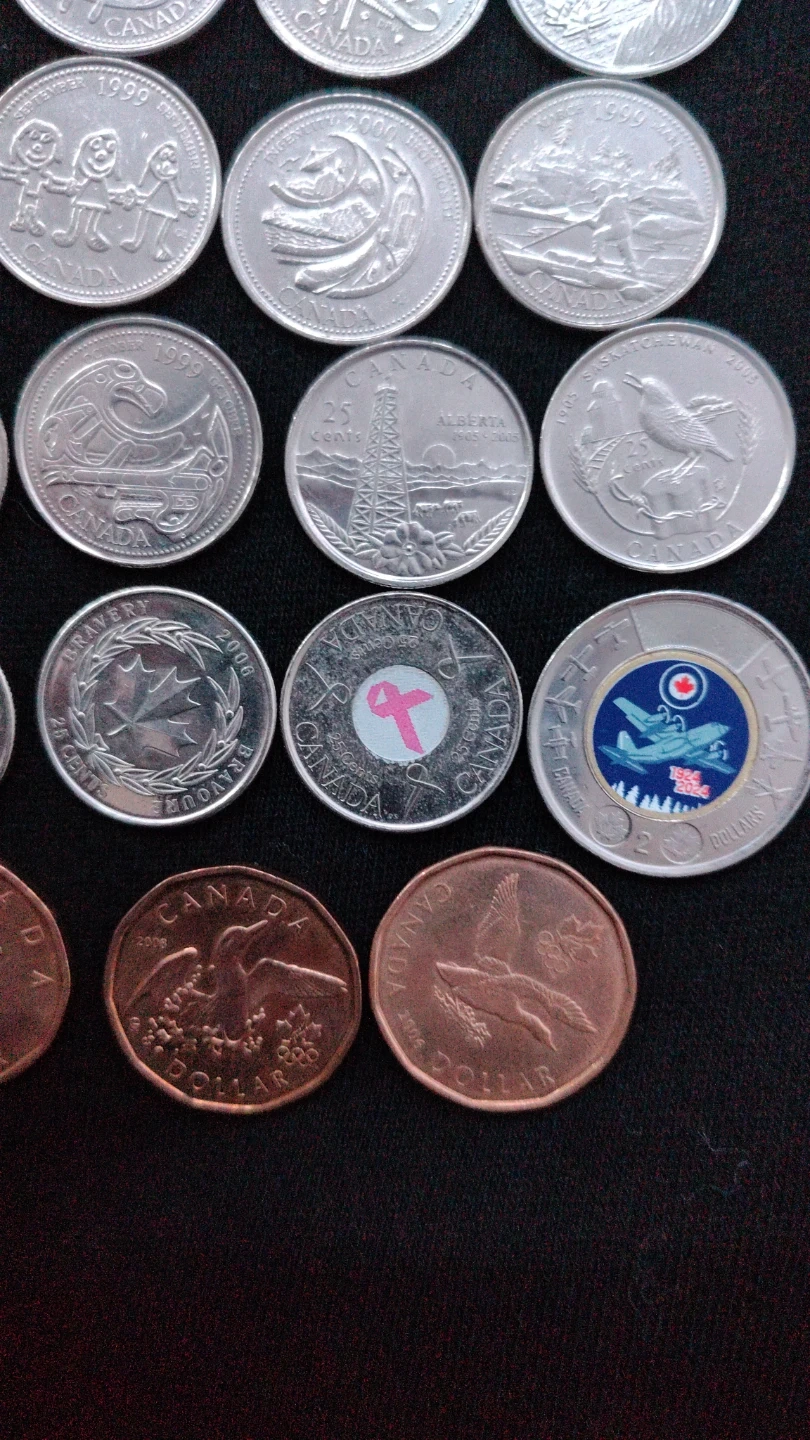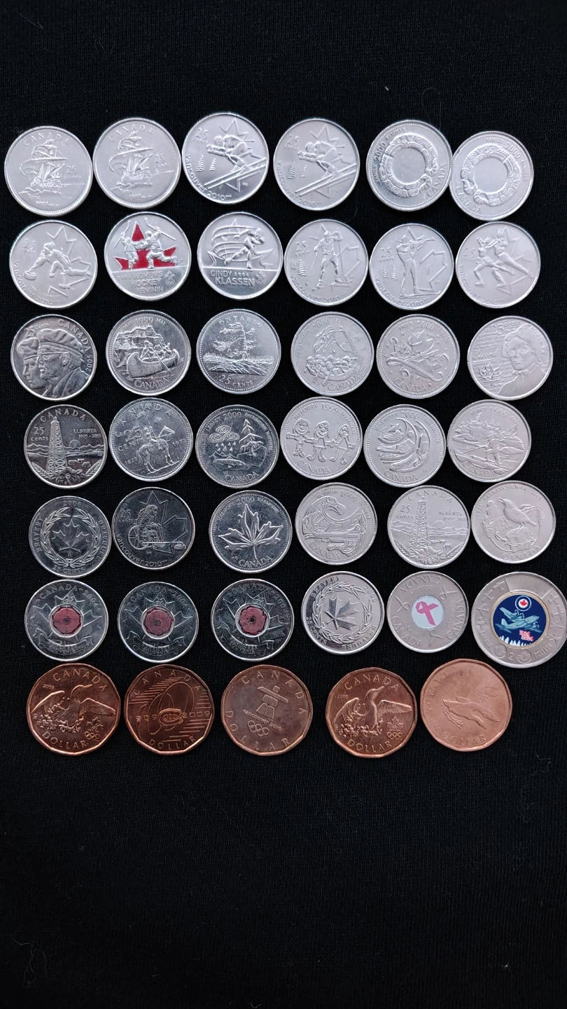 65Selling a collection of Canadian commemorative coins. They feature various designs and historical events. Perfect for collectors or anyone interested in Canadian history and numismatics