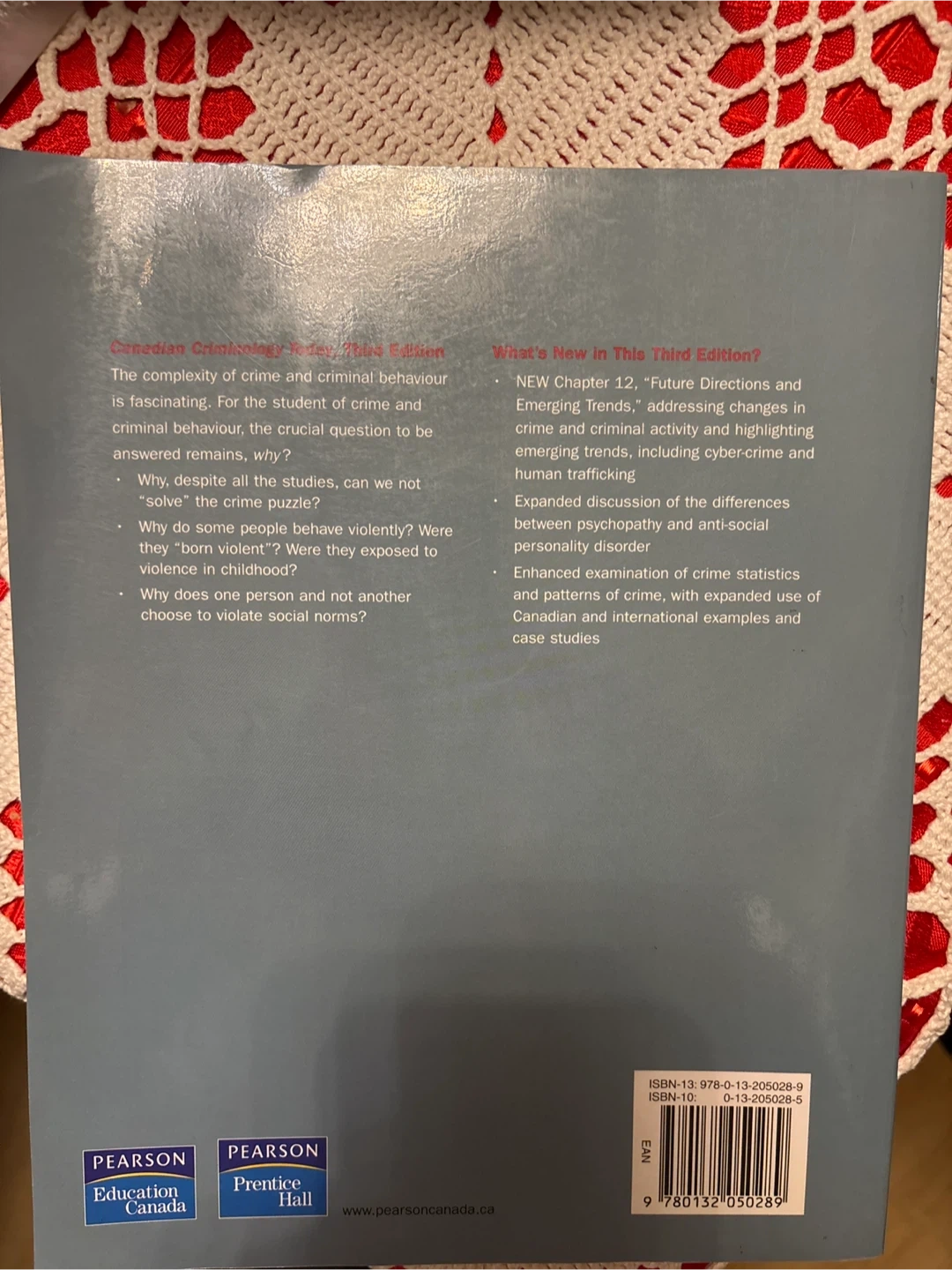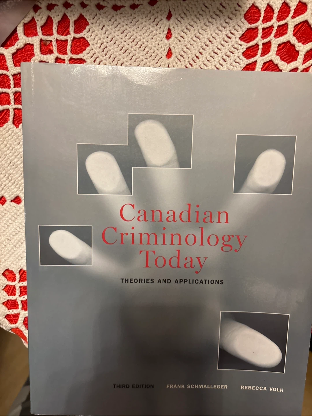 Selling a copy of Canadian Criminology Today, Third Edition. It explores theories and applications of criminology. Written by Frank Schmalleger and Rebecca Volk. A great resource for students of crime and criminal behaviour