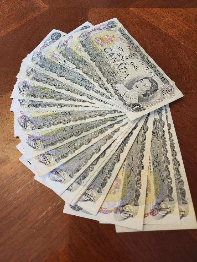 Great to Good Condition, Canadian one Dollar Banknotes 1973 Lot Sale of 20 Pieces, All for $60 , Pick up Brampton L6y4y5, Collector's Welcome, Thank you
