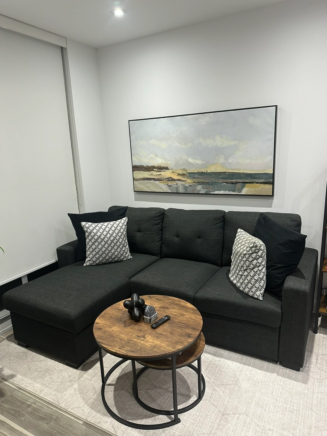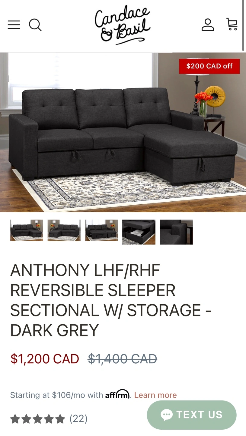26*NO SMOKING *NO PETS Bought this couch 6 months ago and I'm moving. Amazing couch in amazing condition. Configurable chaise for left or right-hand facing. Open bed dimensions 55 x 80 inch Dimensions (L x W X H): 93 x 61.75 x 37.5in Love seat: 59.5 x 36.5 x 37.5 inch Chaise: 33.5 x 61.75 x 37.5 inch Seat depth: 23in Seat height: 19in *CAN PROVIDE DELIVERY