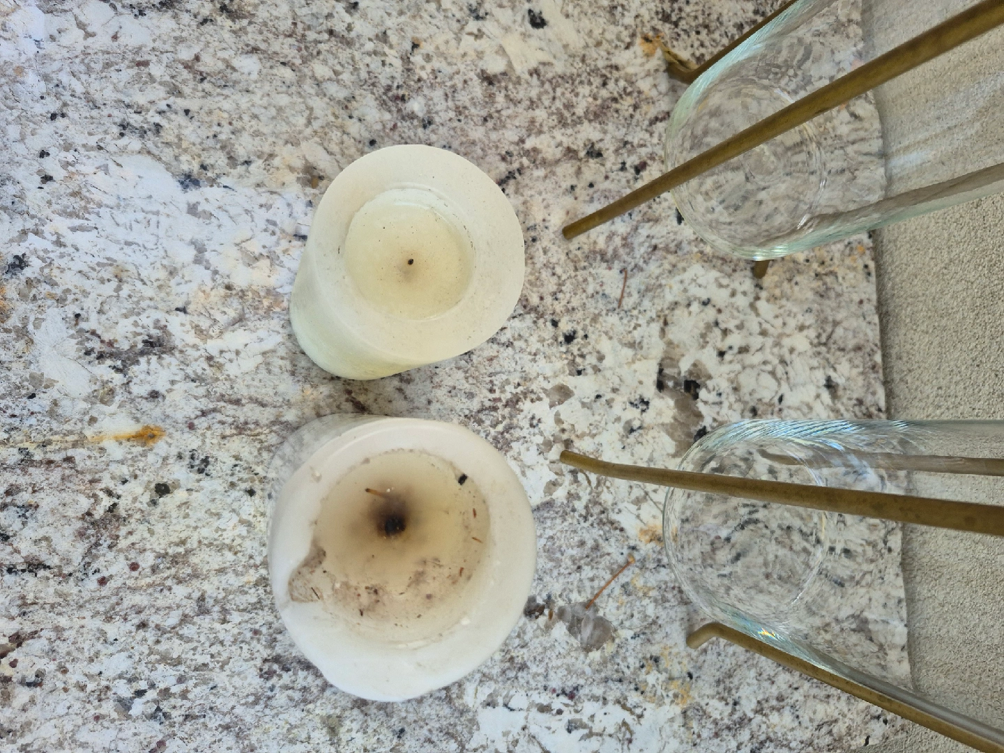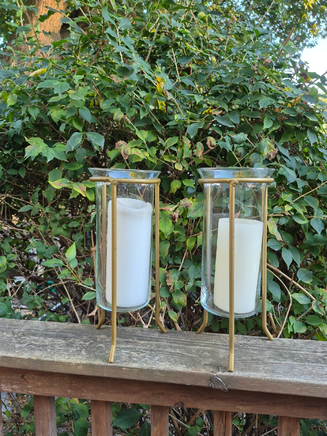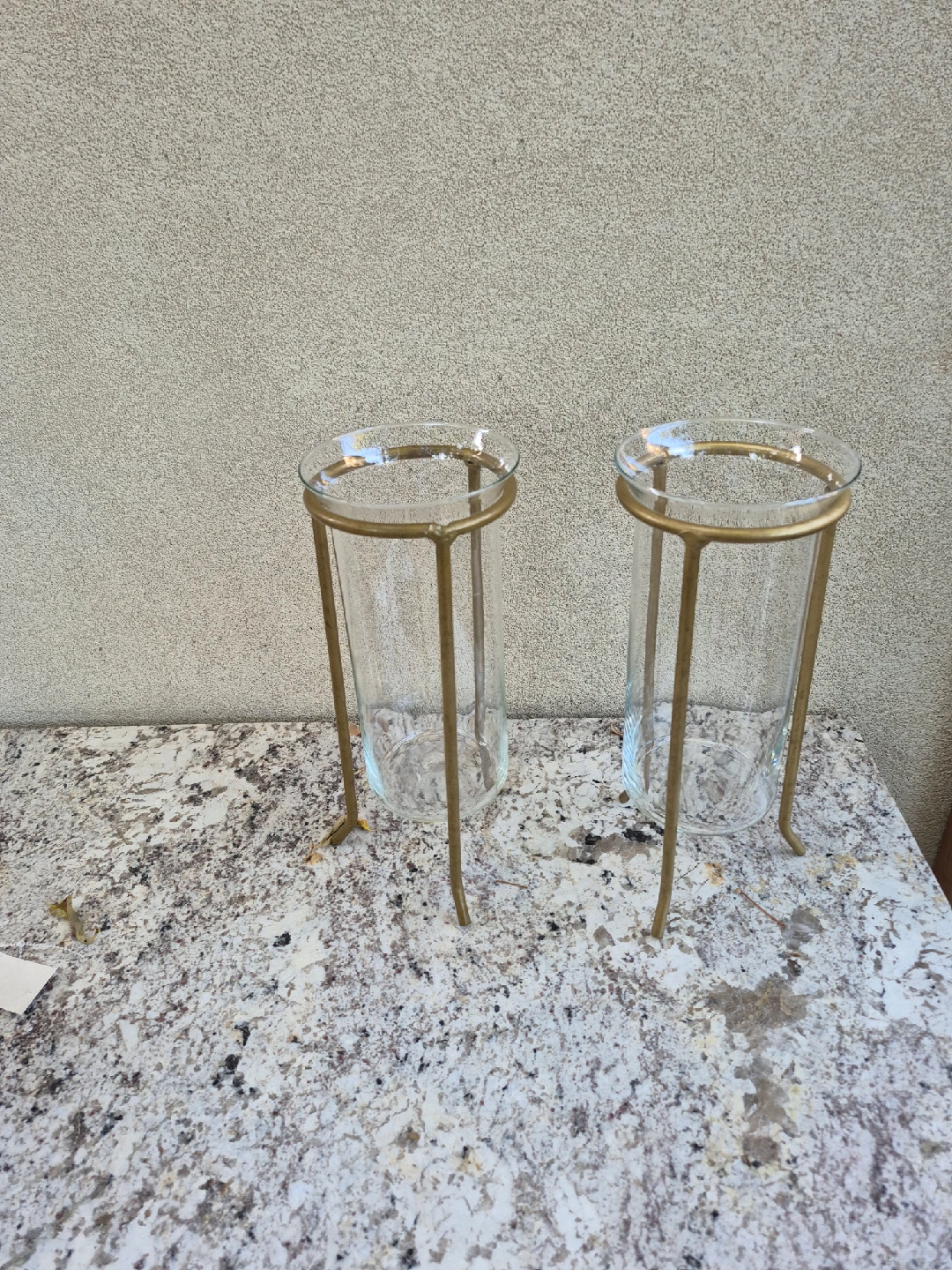 Two candle holders with glass inserts. They're in good condition and ready to add a touch of elegance to your space! Candles are included but don't match. Price is $5 total for both. Pick up only no meet-up. Main and Danforth East York Woodbine/ Lumsden Cash only