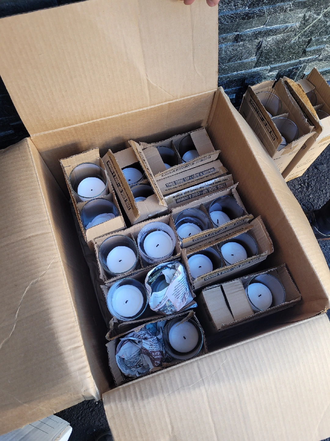 Selling candle holders of various sizes with some used candles and a few unused candles. Used for our wedding. Bought from Yummi Candles. Small (6") - 56 Medium (7.5") - 16 Large (9") - 11 X-Large (11") - 1 Tealight candles (from ikea) - 70 Total Vases = 154 also have 10 unused small candles (4" tall)