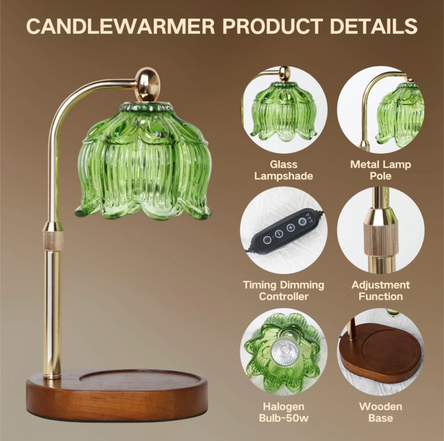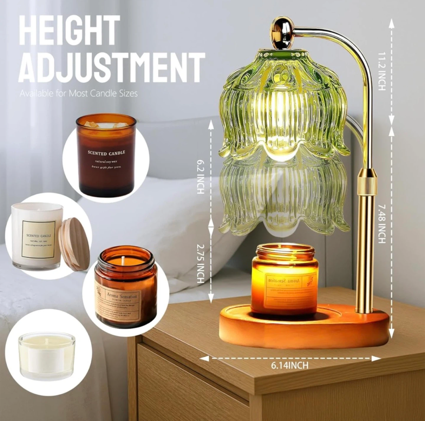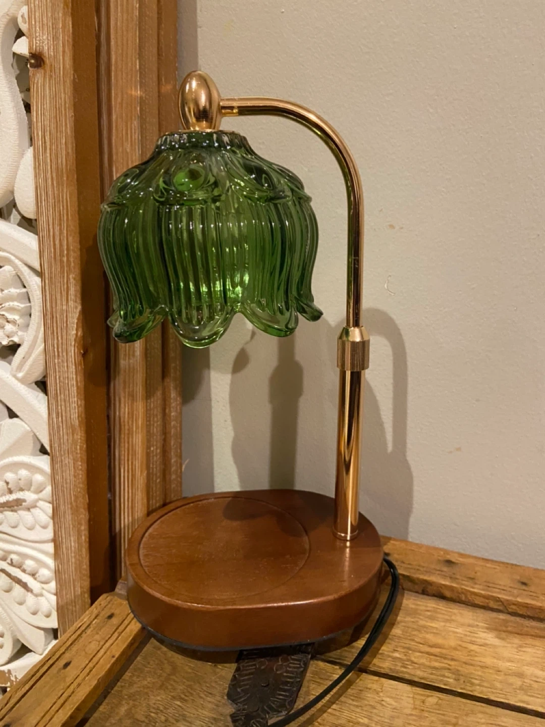 291Candle Warmer Lamp Green glass shade Adjustable warmth and height Timer $20 (retail $40 plus tax) Pickup in Whitby