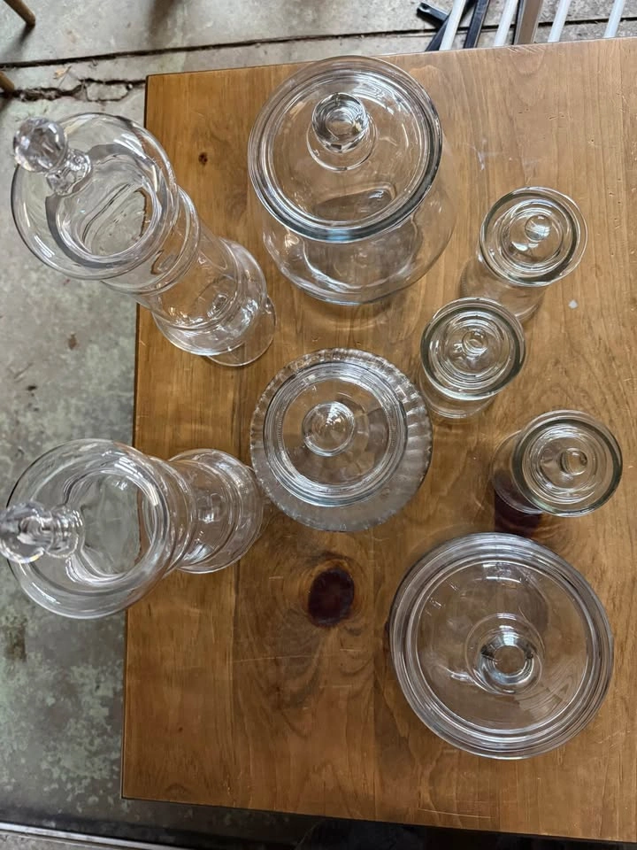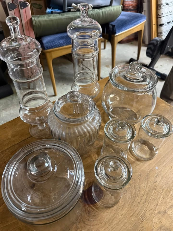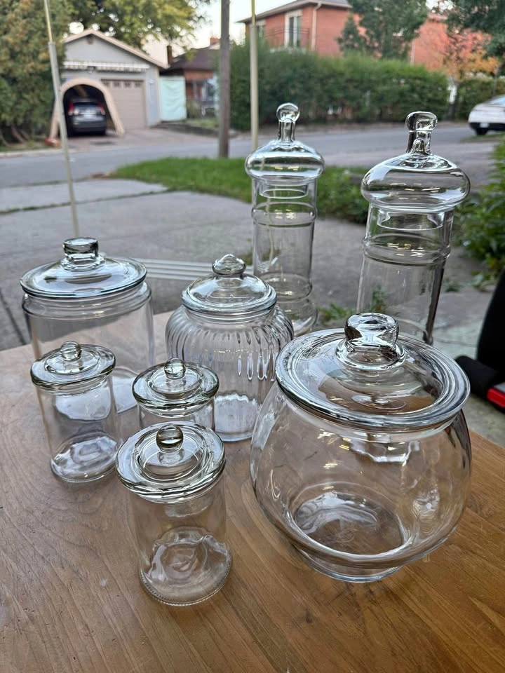 318 glass candy jars used for a candy bar at our wedding. Pick up near Weston and 401