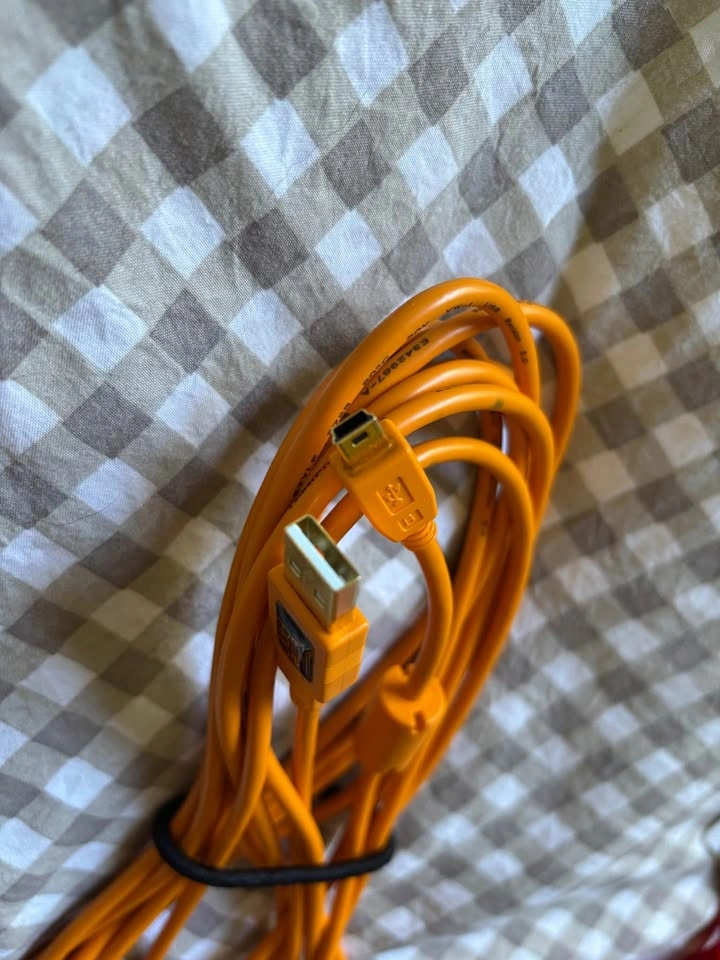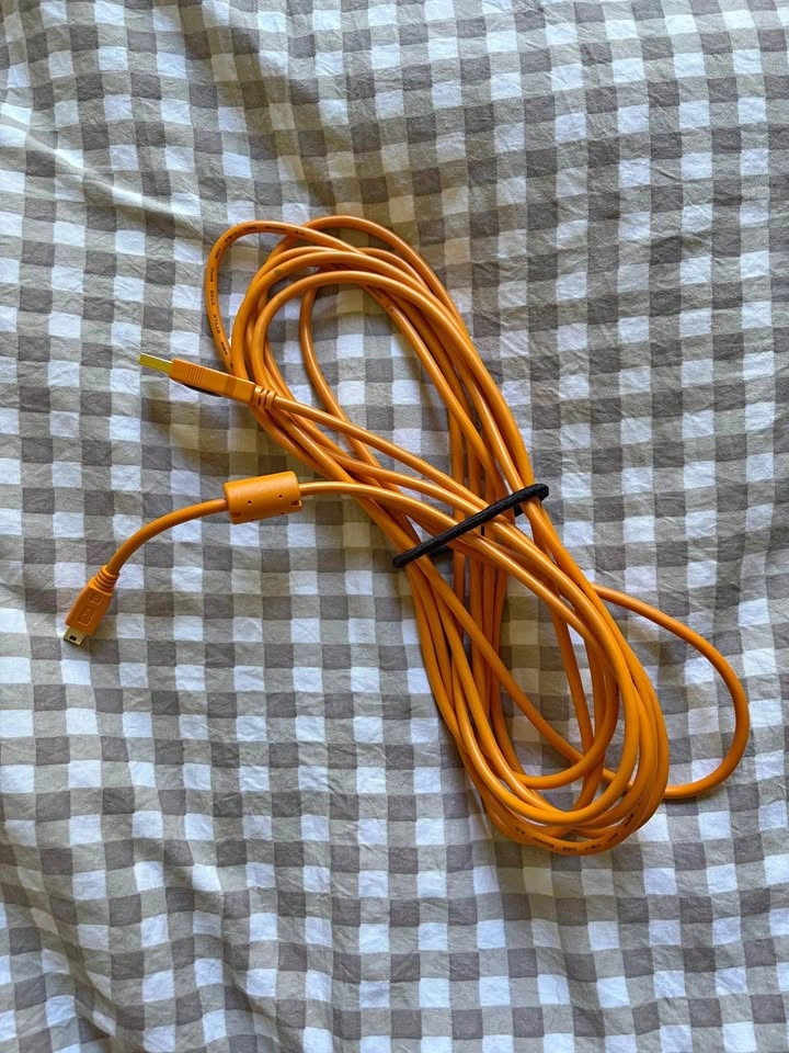 Selling a tethering cable compatible with Canon 5D Mark III. * Perfect for studio or on-location shoots to connect your camera to a computer * Used but in good working condition * Helps with instant image review and workflow efficiency