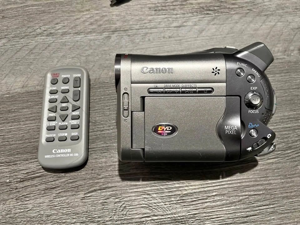 25Canon DC10 DVD Camcorder. This camcorder was Canon's first DVD camcorder model, known for its compact design and ease of use! Here are some key features of the Canon DC10: Recording Media: It records video directly onto 8cm mini DVD-R/RW discs. Optics: It features a 10x optical zoom lens with an f/1.8 aperture. Sensor: The camcorder uses a 1.33-megapixel CCD sensor. Photo Function: It has a two-way still-photo function that allows capturing images onto either a miniSD card or a DVD. Connectivity: The DC10 includes high-speed USB connectivity for easy transfer of files. Tested and works amazing! Comes with all the cords and charger! Pick up in St. Catharines:)