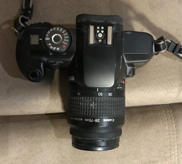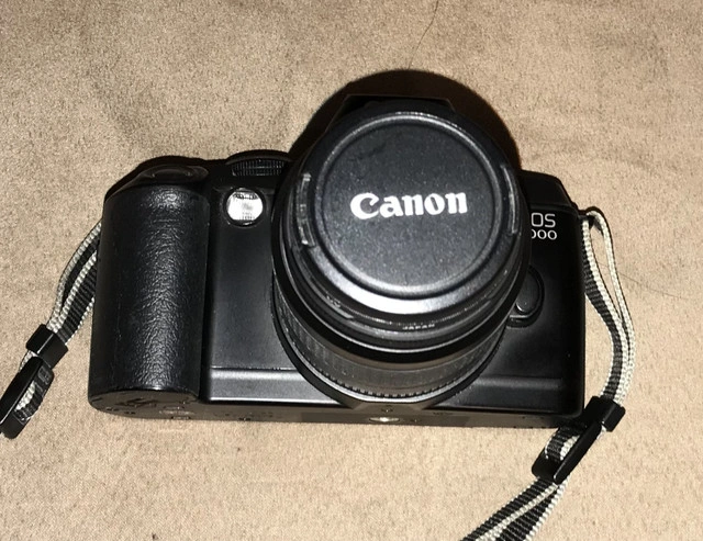 Canon EOS 5000 35mm SLR film camera Autofocus EF-mount 35mm SLR released by Canon in 1995. It was marketed as a lower-end consumer camera sold only for the European market. It has a built-in flash and physical shutter speed dial. Plastic body available in black. • Shutter: Vertical metal focal plane, 1/8s - 1/2000s + B • ISO range: 25 - 5000 (DX-coded) • Size: 145 x 92 x 70mm • Weight: 340g The Canon EOS 5000 is a 35mm film SLR (Single-Lens Reflex) camera that was introduced by Canon in 1991. This model was designed to be an entry-level camera, making it accessible for amateur photographers. The EOS 5000 is a manual-focus 35mm film camera with an auto-focus system. It features a TTL (Through-The-Lens) autofocus system with a single center point. Offers automatic exposure with options to adjust aperture and shutter speed. Allows the user to set the shutter speed while the camera automatically adjusts the aperture. Enables the user to select the aperture while the camera selects the appropriate shutter speed. Provides full control over both shutter speed and aperture. Evaluative Metering assesses the entire scene to determine the optimal exposure. The camera uses a traditional optical viewfinder. The EOS 5000 comes with a built-in flash for low-light conditions. Features automatic film loading. The camera is designed to be relatively compact and lightweight. Specifications: • Film Format: 35mm • Lens Mount: Canon EF lens mount, compatible with a wide range of Canon EF lenses. • Shutter Speed Range: Typically from 30 seconds to 1/2000 second, including a bulb mode for long exposures. • ISO Range: Generally supports ISO 100 to 3200. • Battery: Powered by a 2CR5 lithium battery. Includes a self-timer function. Basic custom settings for more control over the shooting experience. The Canon EOS 5000 was designed as an entry-level 35mm SLR camera, offering a balance between manual controls and automatic features. It was well-regarded for its ease of use and reliability.