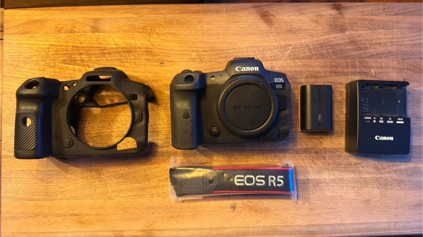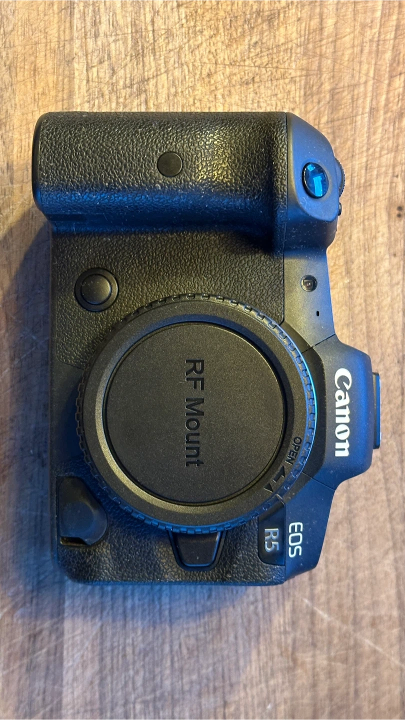 Selling a Canon EOS R5 camera body. It's in great condition and ready for its next adventure! The camera features an RF mount. Like new condition, protected in silicon housing from day one with tempered glass protectors. Comes with original box, battery, strap and instructions