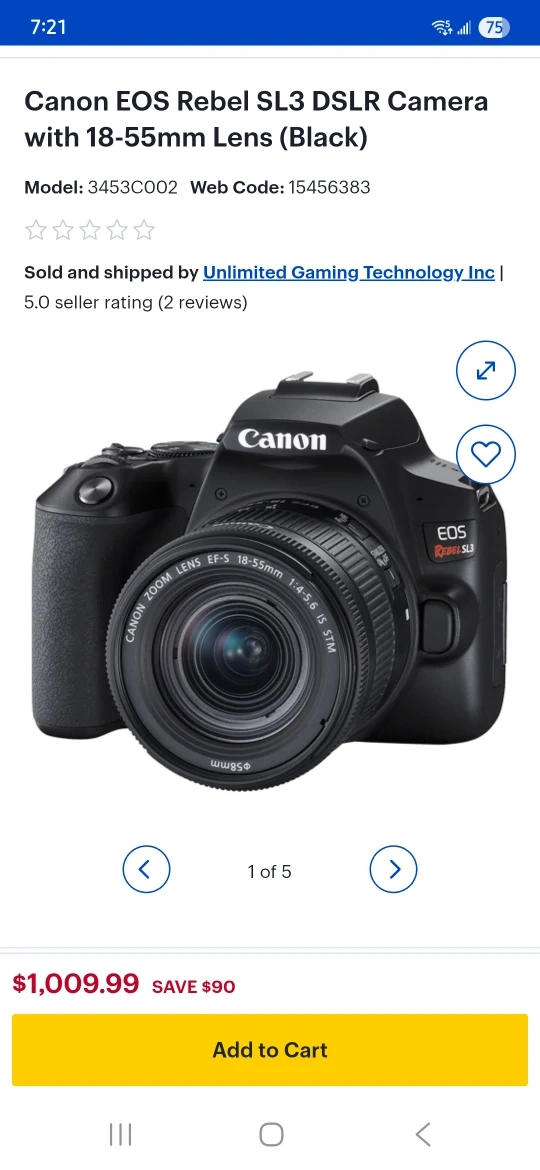 613Canon EOS Rebel SL3 camera with an EF-S 18-55mm lens. Also included is a camera bag from evecase and a battery charger. No memory card. Like new condition. Only used a couple of times.