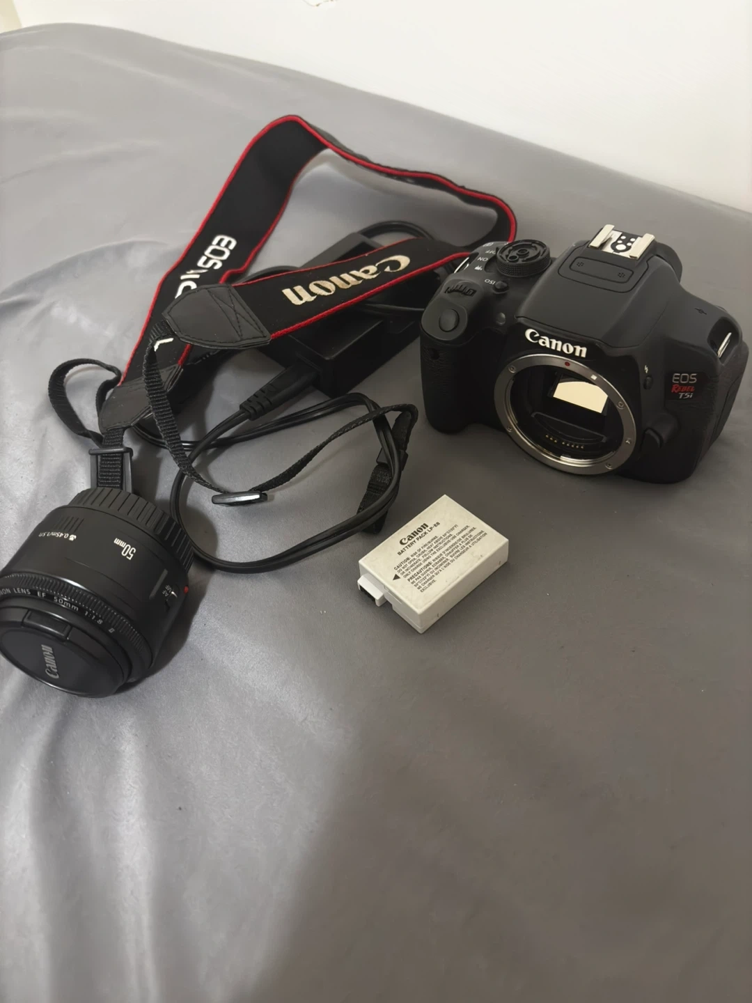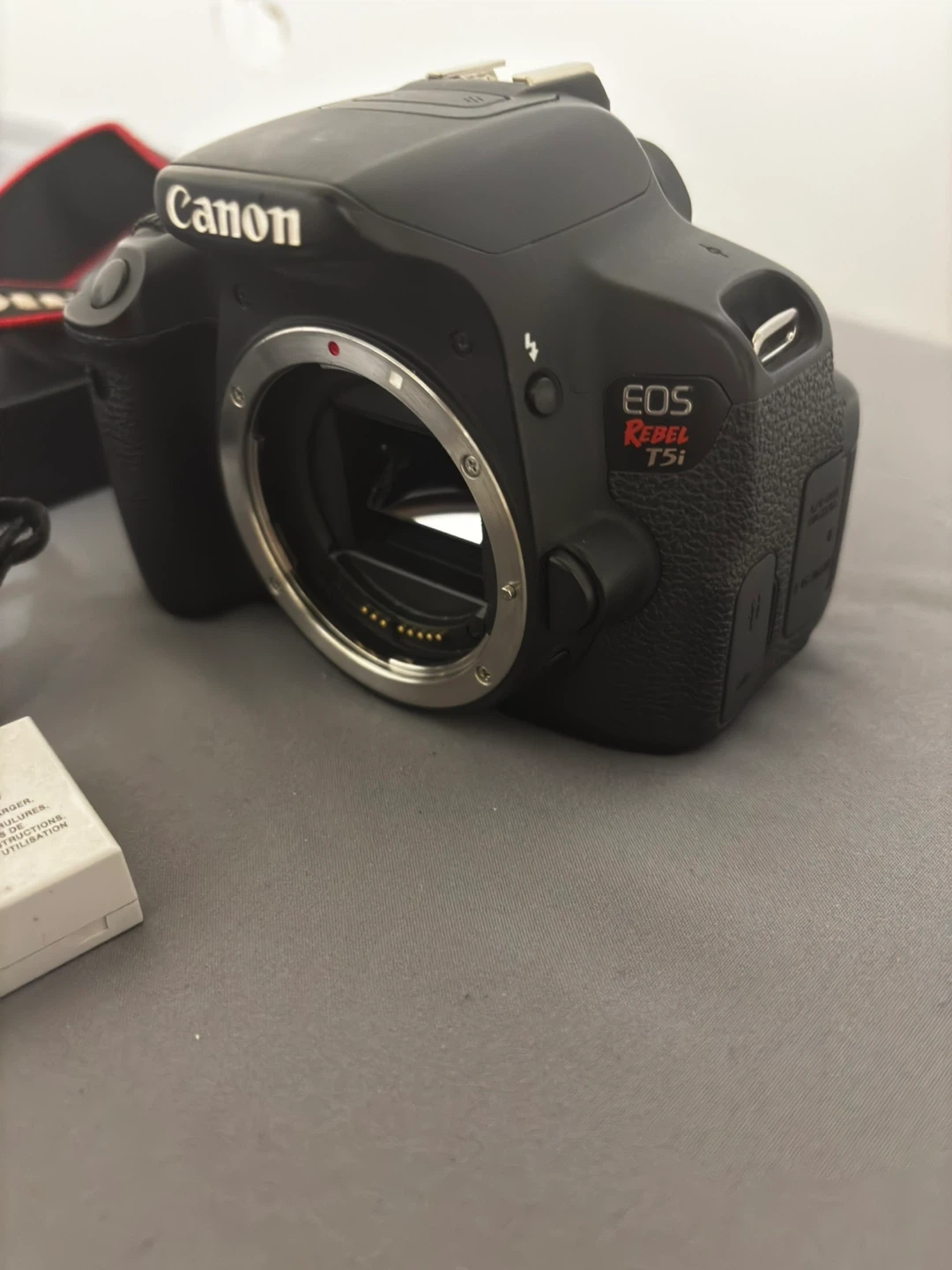 16Selling a Canon EOS Rebel T5i DSLR camera in great condition! This camera comes with a 50mm lens, perfect for capturing beautiful photos and videos. Included is the camera strap and battery. Great for anyone looking to get into photography or upgrade their current setup!