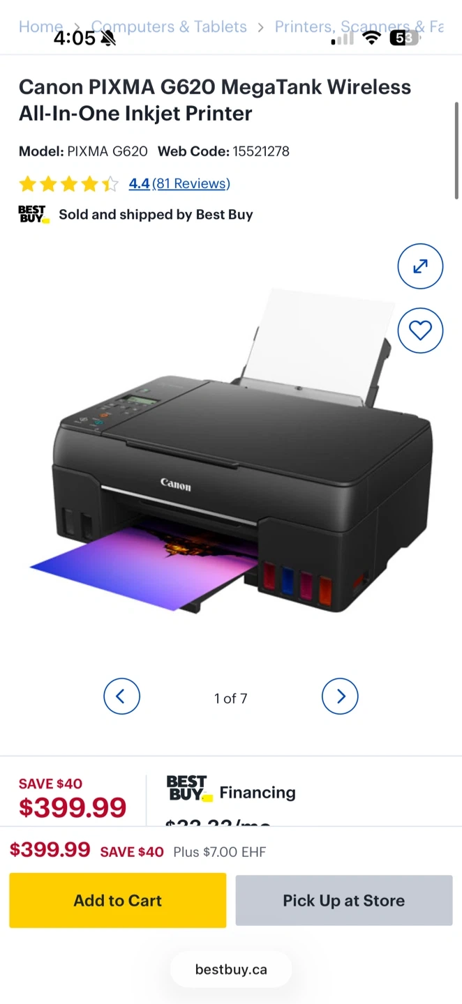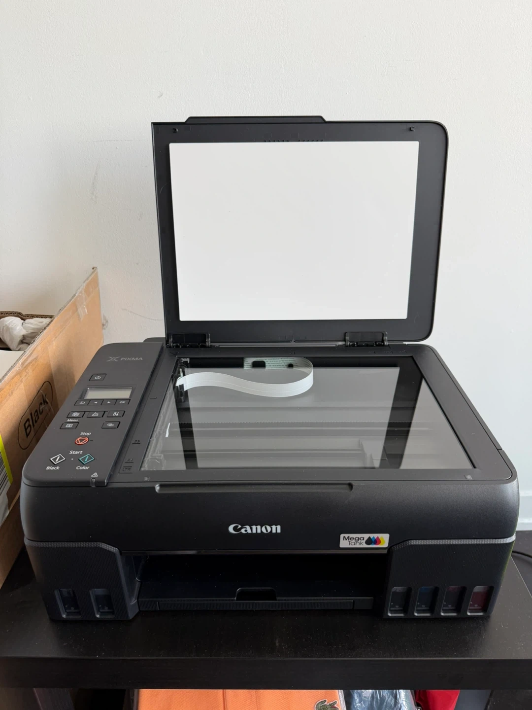 Canon PIXMA G620 MegaTank Photo All-in-One Printer – Excellent Condition Selling a Canon PIXMA G620 MegaTank Photo All-in-One Printer in excellent, gently used condition. This printer is perfect for high-quality, high-volume photo and document printing. It features six dye-based ink tanks (Black, Cyan, Magenta, Yellow, Red, Gray) for stunning, vibrant color accuracy and incredible savings on ink. - Print, scan, and copy in one compact unit - Wireless printing (Wi-Fi, mobile app, Apple AirPrint, Mopria supported) - Massive ink capacity: Up to 3,800 4"x6" colour photos per full tank set - 6 dye-based ink tanks for expanded color gamut (includes Red and Gray inks) - Borderless prints up to 8.5"x11", panoramic up to 47" long - Rear-feed tray supports various paper sizes and types - Easy-refill ink system with visible tanks (see photos for current levels) - High print resolution: Up to 4800 x 1200 dpi - Flatbed scanner with 600x1200 dpi resolution - Simple to maintain, with replaceable maintenance cartridge and print heads Condition: - Clean, well-maintained, smoke-free home (actual photos provided) - Fully functional—prints and scans perfectly - Ink levels as shown (some tanks partially used) Extras: - Includes original power cord and setup documentation - Can offer a print test upon pick-up Reason to Buy: Save big on ink, enjoy top-tier photo prints, and eliminate the hassle of cartridges. Ideal for photographers, students, crafters, and families wanting professional print quality at home. Pickup only in downtown Toronto. Message for more info or to arrange a viewing!