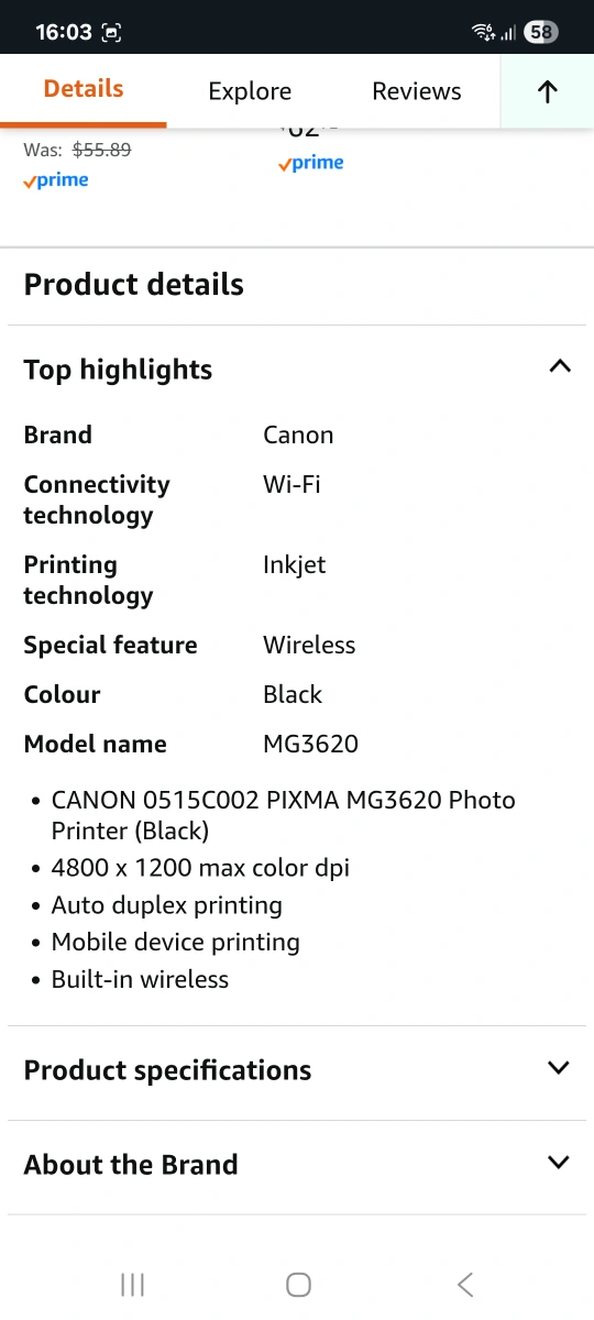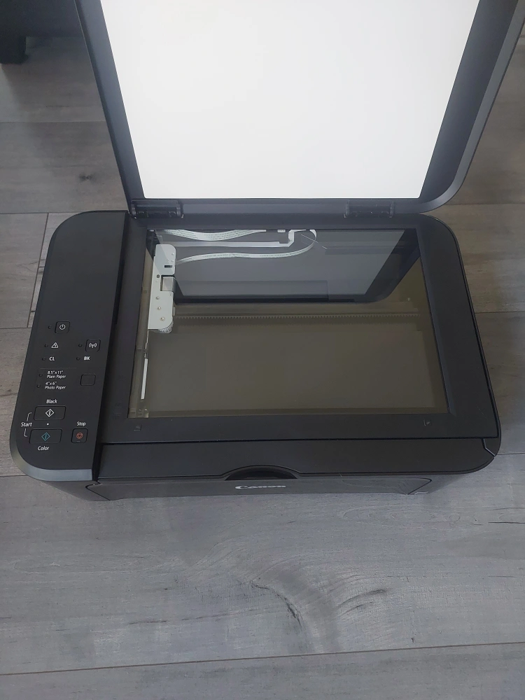 Selling a Canon PIXMA MG3620 wireless all-in-one printer. This is an inkjet printer with Wi-Fi connectivity. It features auto duplex printing and mobile device printing. It can print at 4800 x 1200 max colour dpi. Bought for 129.92 CAD February 2025, comes with the purchase box and manual. Check this link for more info https://a.co/d/eQIAm0R