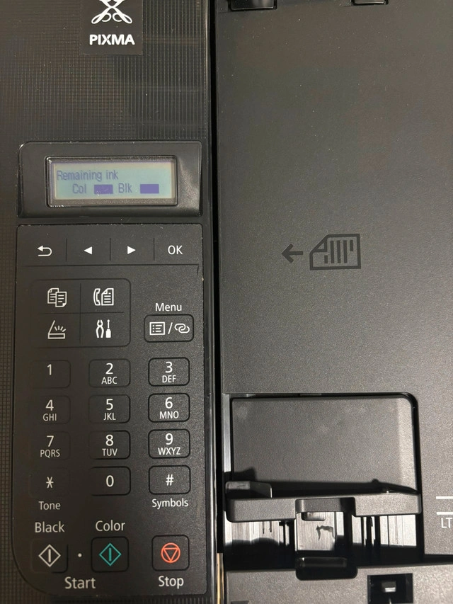 Brand New Full Ink Cartridge, receipt can be provided Sell because I have too many printers For all your work or home printing needs, the PIXMA TR4720 Wireless All-in-One Printer has you covered. Enjoy simple setup through the Canon PRINT Inkjet/SELPHY App2 and an easy to install 2-Cartridge hybrid ink system and front loading 100-sheet paper tray. Big on performance, the PIXMA TR4720 is equipped with Auto 2-Sided Printing, an Auto Document Feeder for multi-page scanning, and built-in Fax functionality. Print, Copy, Scan, Fax Inkjet print technology Black Document (Letter/Simplex): Approx. 8.8 ipm, Colour Document (Letter/Simplex): Approx. 4.4 ipm Duplex Printing Print Resolution: Up to 4800 x 1200 dpi Copy Resolution: 600 x 1200 dpi (Optical) Scan Resolution: 600 x 1200 dpi (Optical) Scan Type: Flatbed + ADF Flatbed: 8.5" x 11.7" (Letter/A4), ADF: 8.5" x 14" (Legal/A4) Input Capacity: 100 Sheets of Plain Paper OR 20 Sheets of 4" x 6" / 10 Sheets of 5" x 7" Photo Paper Media Sizes: 4" x 6", 5" x 7", 8" x 10", Letter (8.5" x 11"), Legal (8.5" x 14"), U.S. #10 Envelopes, Custom Size: Width: 4" - 8.5" / Length: 6" - 26.6", Borderless Printing11: 4"x6", 5"x7", 8"x10", Letter (8.5"x11") Connectivity: Hi-Speed USB, Wi-Fi (802.11b/g/n wireless networking, 2.4 GHz), Wireless Direct Connection (Access Point Mode Only), Wireless Connect Includes PIXMA TR4720 Wireless All-in-One Printer, Set of Starter (PG-275/CL-276) Ink Cartridges, RJ-11 Telephone/Modem Cable, Power Cord, Documentation Compatible Ink: PG-275 Pigment Black Ink, CL-276 Dye Colour Inks