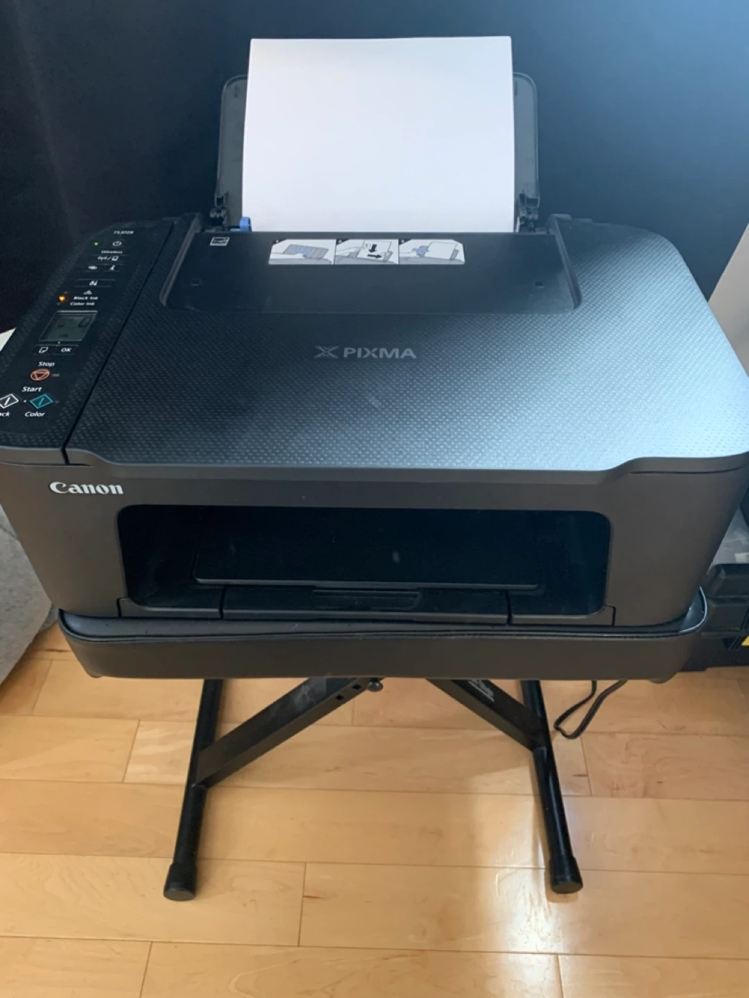 Selling a Canon PIXMA TS3729 all-in-one printer. It's in good working condition and ready for a new home! Perfect for home or office use. It features wireless connectivity for easy printing from your devices. It also has both black and color ink capabilities