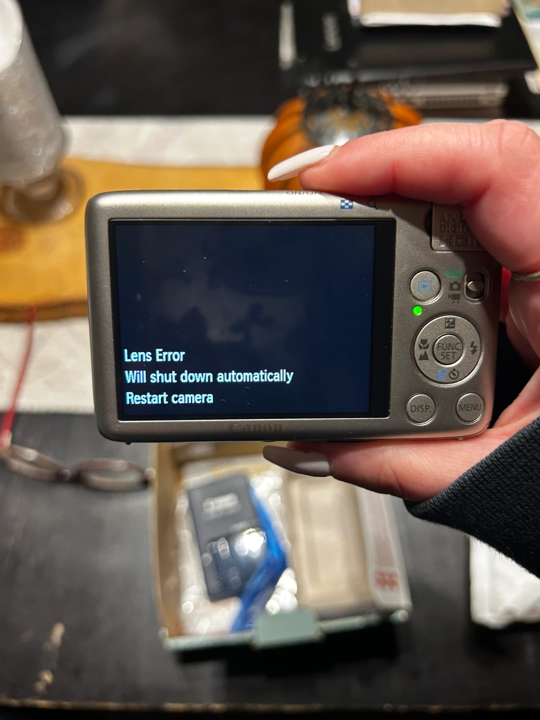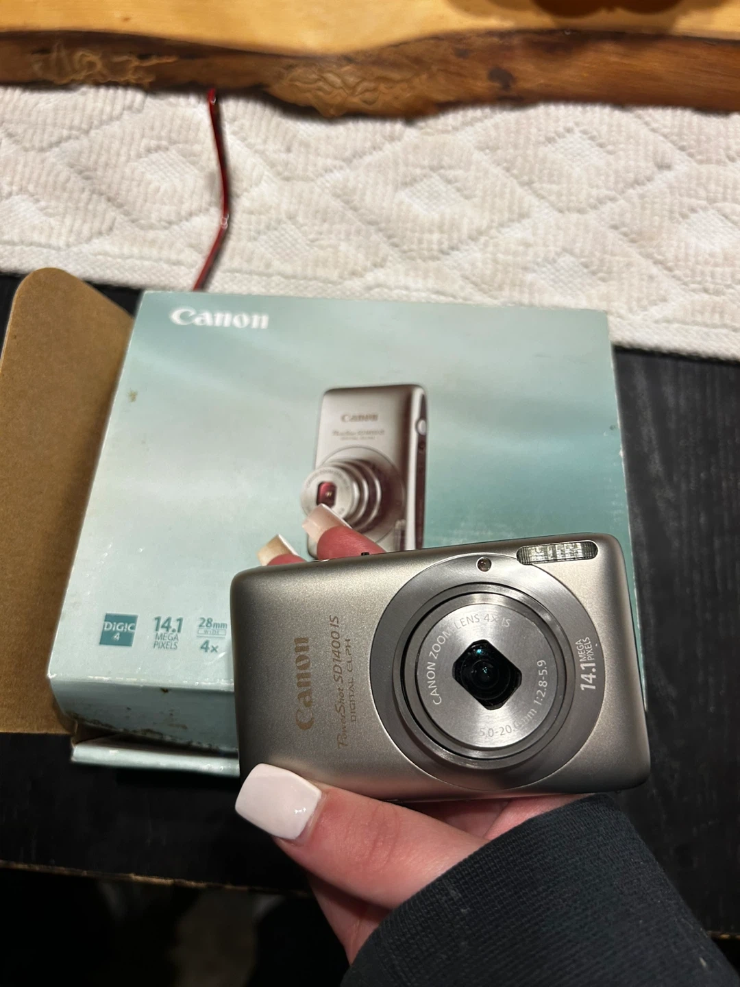 951Selling a Canon PowerShot SD1400 IS digital camera. It comes with the box and charger. The camera is silver and has a 14.1 mega pixels lens. The camera is showing a lens error and will shut down automatically after turning on. Maybe you can fix it ?? 🎀Bundle items for discounts when purchasing more then one item 🎀
