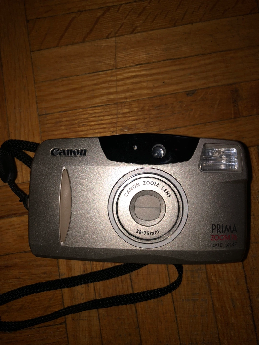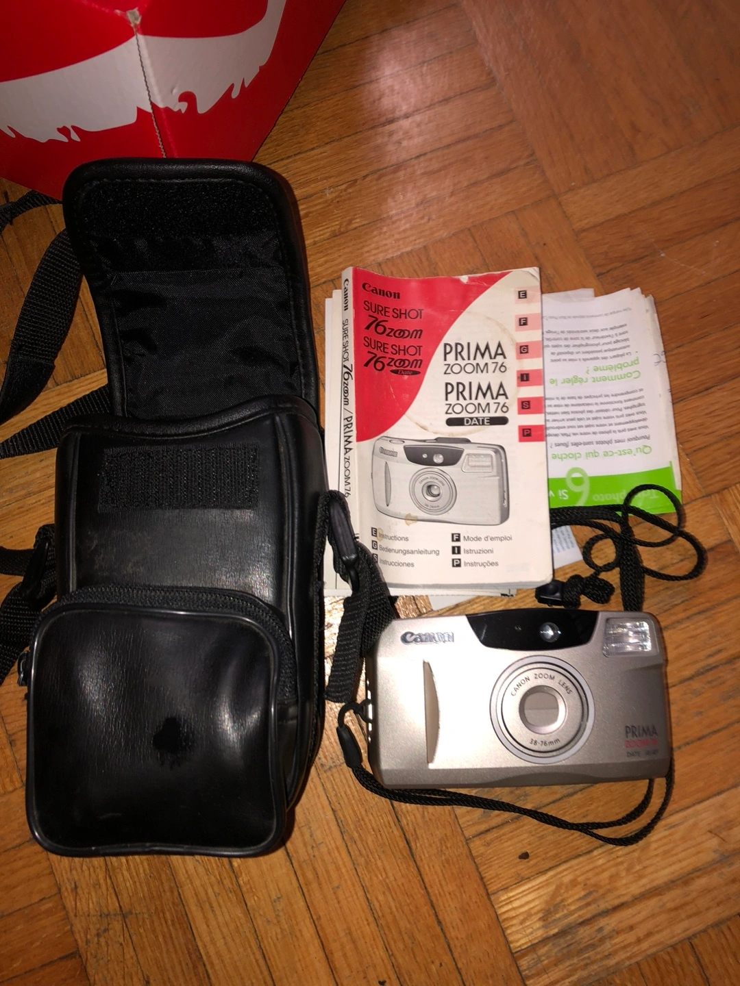 98Selling a Canon Prima Zoom 76 Date camera! It comes with a zoom lens of 38-76mm. Included is the camera bag and instructions $60 OBO