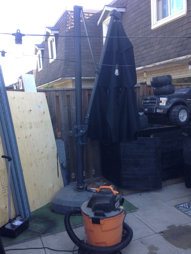 Selling a cantilever patio umbrella. It's in good condition and ready to provide shade for your outdoor space. Perfect for those sunny days! 11feet width
