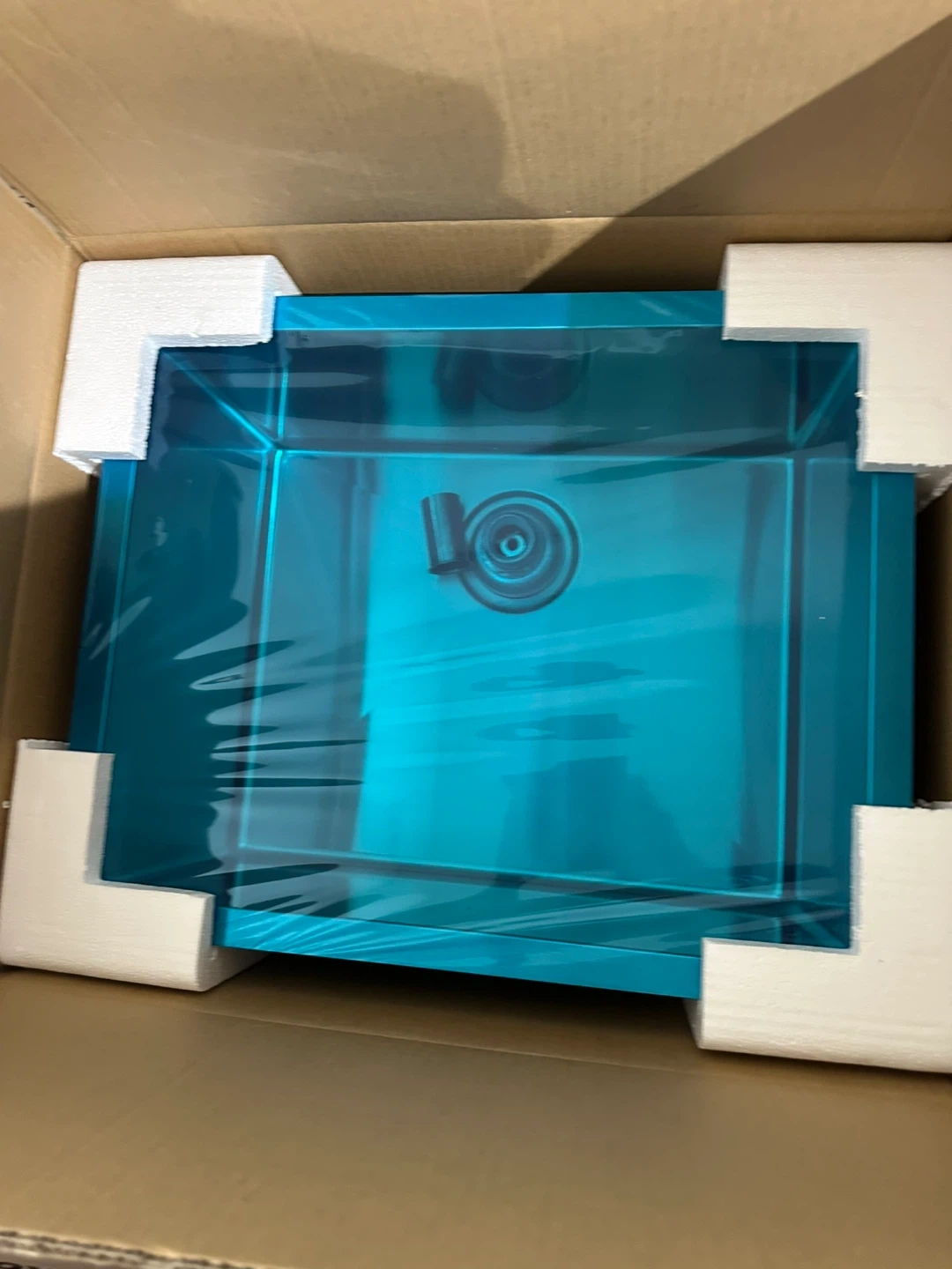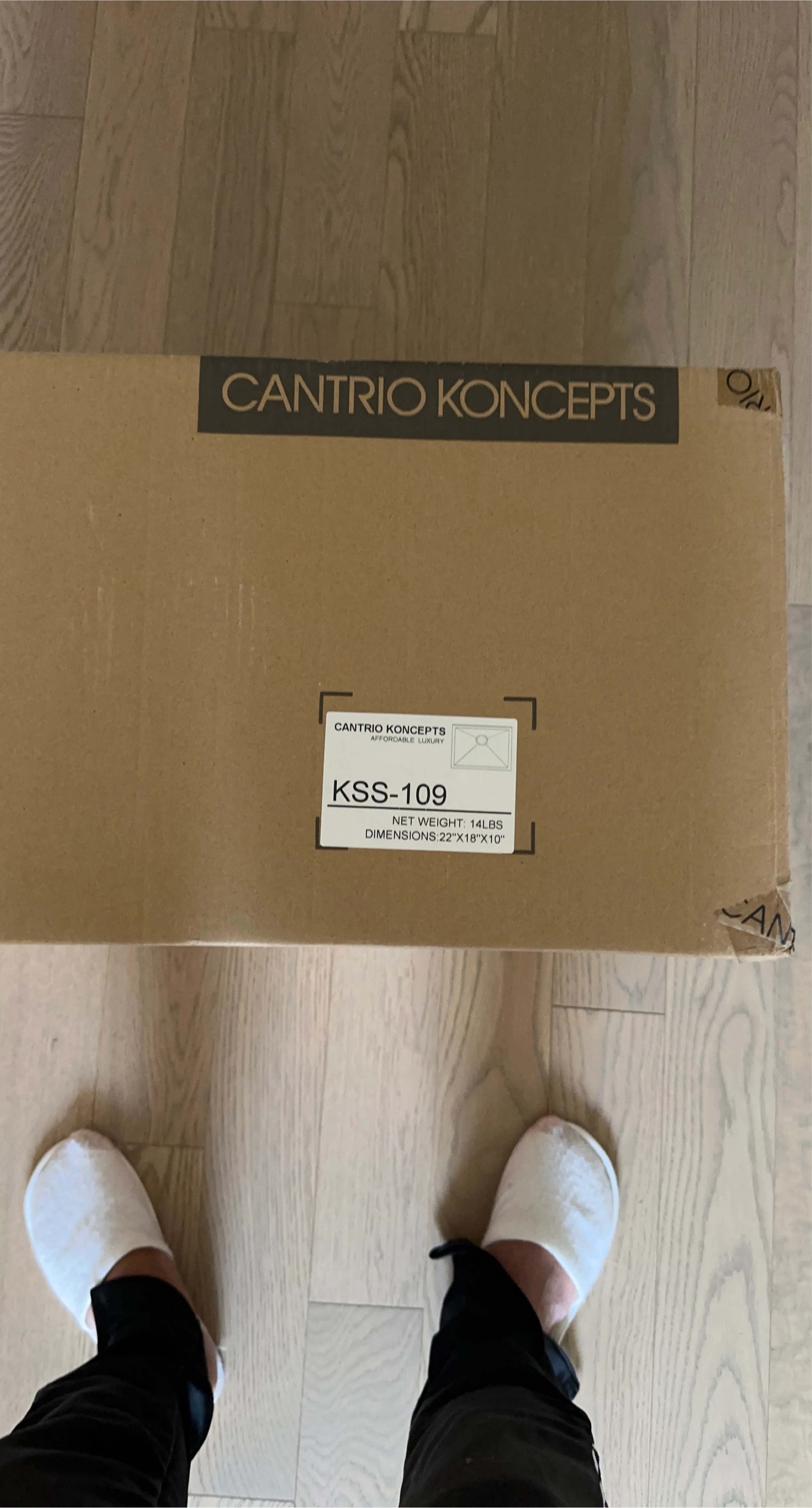 73Selling a Cantrio Koncepts sink, model KSS-109. The box states it's net weight is 14lbs and the dimensions are 22"x18"x10"