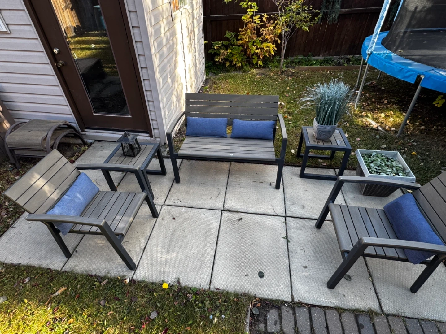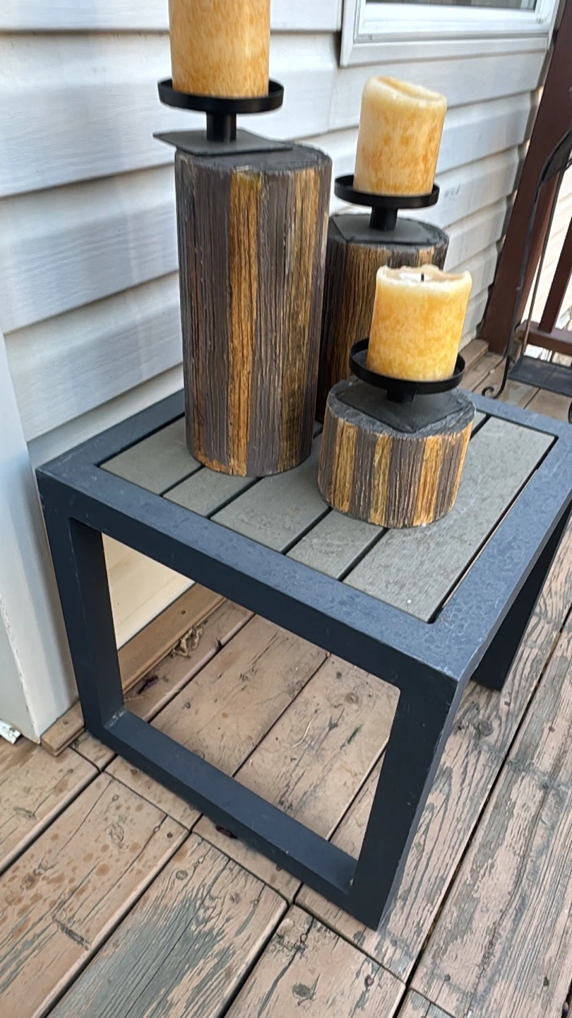 32Selling a Canvas aluminum patio furniture set. It's a great set for the backyard or patio. The set includes a loveseat, two chairs, and two side tables. All pieces are made of durable aluminum and are in good condition!