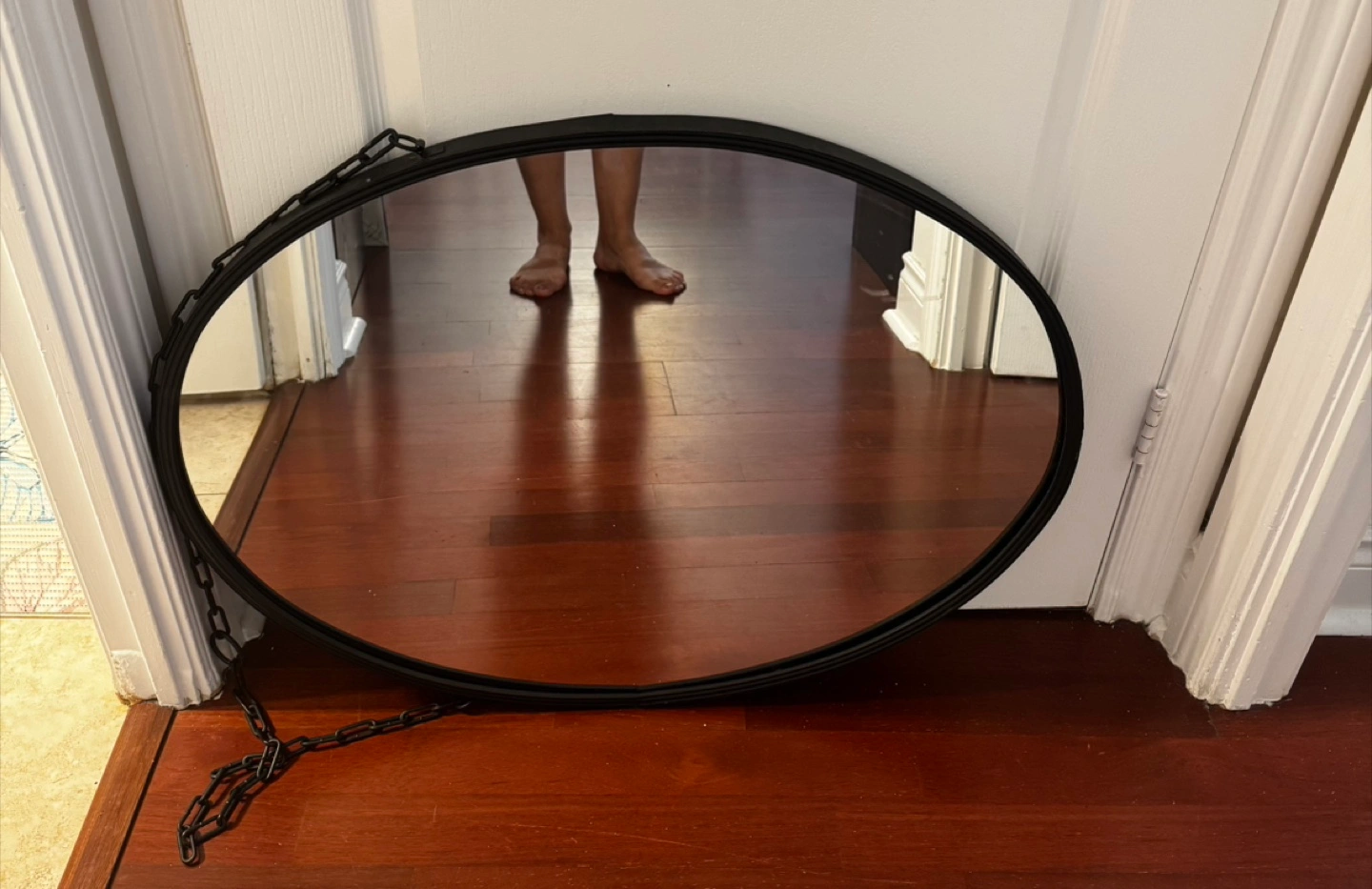 Selling a stylish oval mirror from CAP Importing Ltd. It features a unique chain detail and a sleek black frame. Perfect for adding a touch of modern elegance to any room! Brand: CAP Importing Ltd. * Shape: Oval * Frame Material: Metal * Colour: Black 29x22 inches $30 Yonge and finch area
