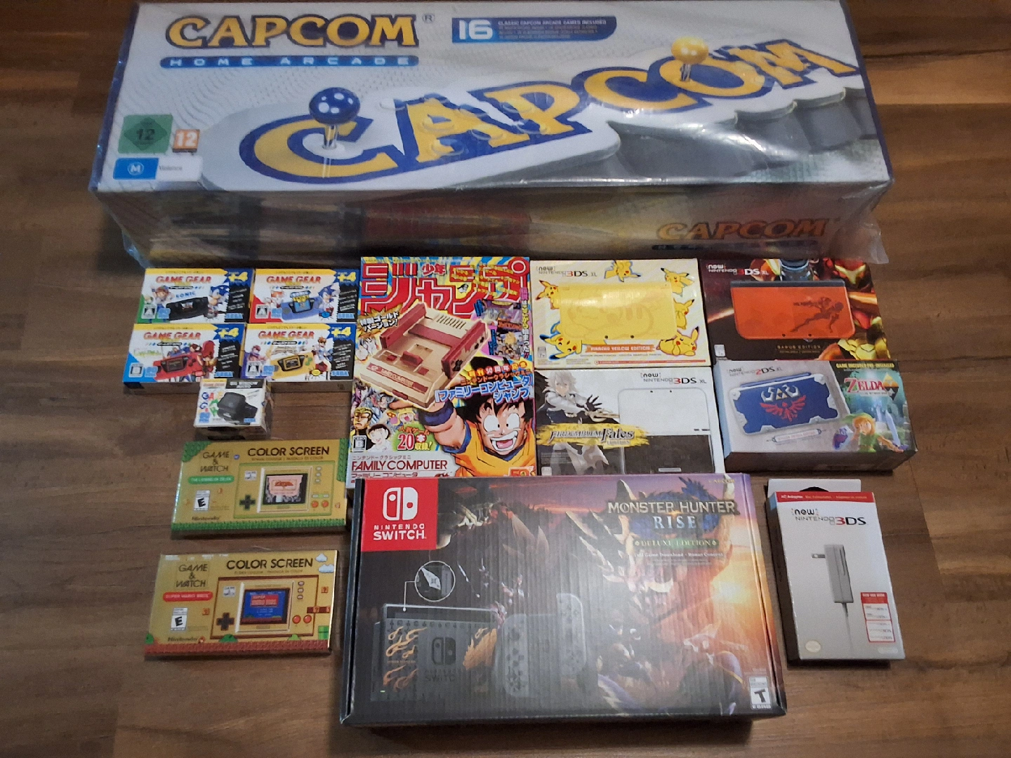 65[Console/NEW] •capcom home arcade(only available in UK & Japan): $700 •Game gear mini complete collection(only sold in Japan): $400 •Famicom gold mini(only sold in Japan) : $150 •New 3ds xl Pikachu edition : $1500 (SOLD) •New 3ds xl metroid edition : $1500 •New 3ds xl fire emblem edition : $2000 •New 2ds xl the legend of zelda link between world shield edition : $1800 •New 3ds official charger : $40 •game and watch super Mario: $60 •game and watch the legend of zelda : $80 •monster hunter rise switch console : $450 •Genesis mini 2 : $300