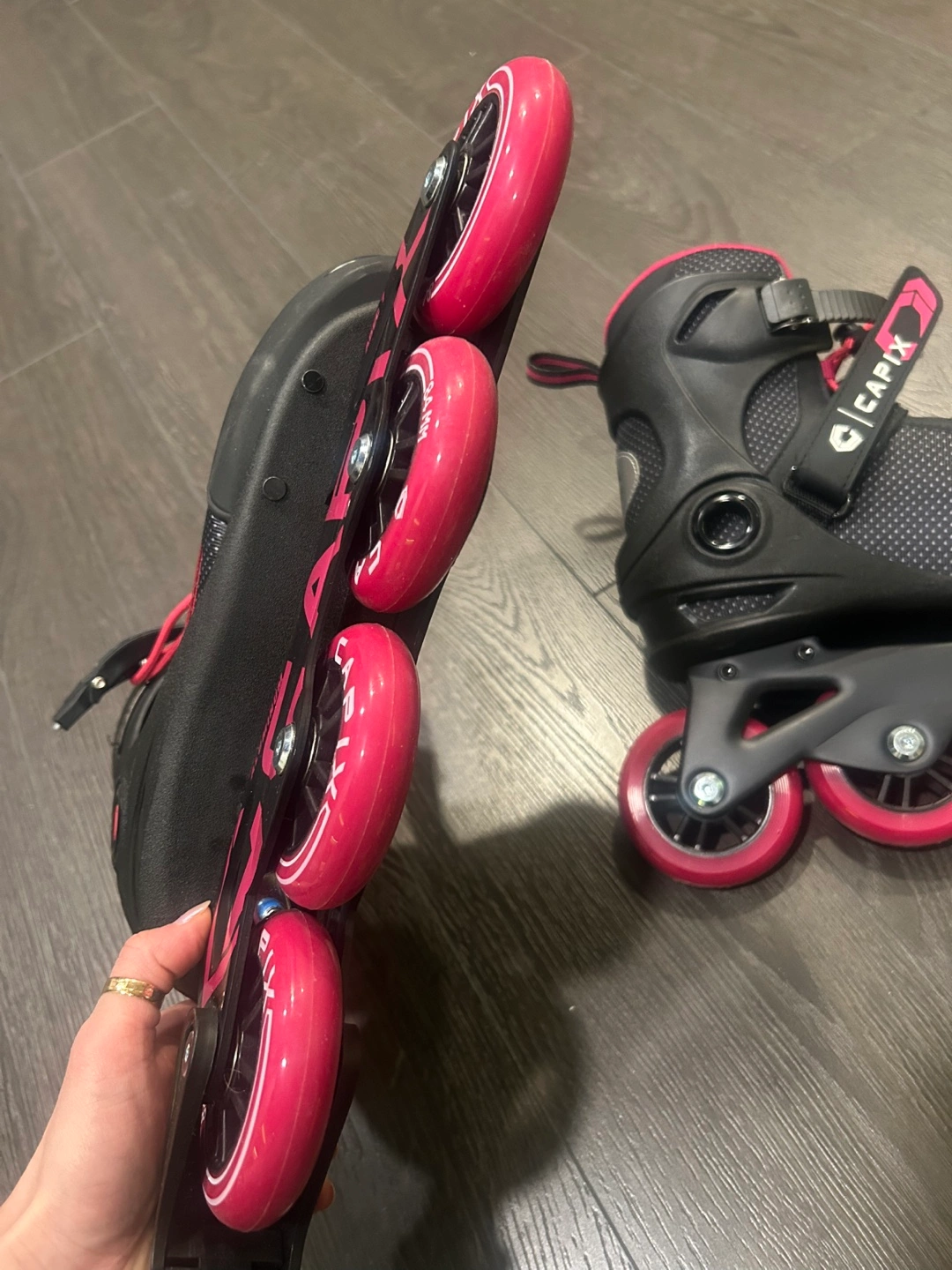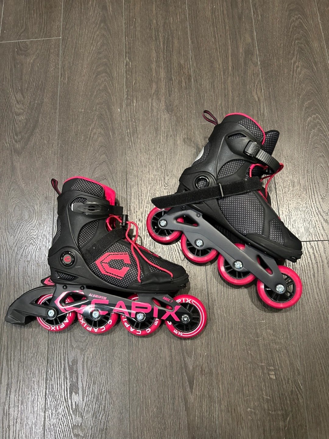 62Pair of skates. Black and pink. Good condition. Wheels are in great condition. Pick up & cash or e-transfer only when pick up please. First comes first.