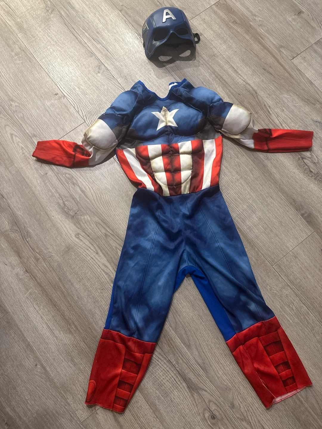 39Selling a Captain America costume, complete with a mask! Perfect for dress-up or Halloween. It's in good condition and ready for a new superhero to wear it size 4-6