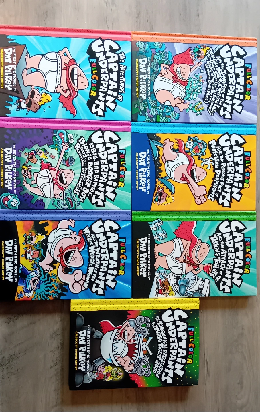 Selling a set of Captain Underpants books by Dav Pilkey! This hilarious series is perfect for kids who love to laugh. Included are: - The Adventures of Captain Underpants - Captain Underpants and the Attack of the Talking Toilets - Captain Underpants and the Perilous Plot of Professor Poopypants - Captain Underpants and the Wrath of the Wicked Wedgie Woman - Captain Underpants and the Big, Bad Battle of the Bionic Booger Boy Part 2 - Captain Underpants and the Invasion of the Incredibly Naughty Cafeteria Ladies from Outer Space - Captain Underpants and the Tyrannical Retaliation of the Turbo Toilet 2000
