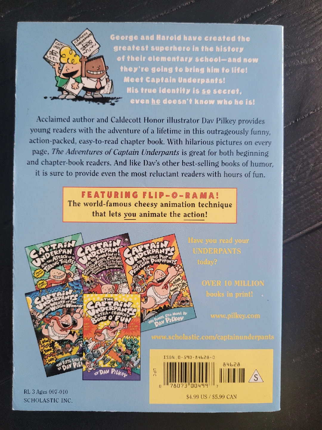 Selling "The Adventures of Captain Underpants: The First Epic Novel" by Dav Pilkey. This book is great for both beginning and chapter-book readers. It features Flip-O-Rama, the world-famous cheesy animation technique that lets you animate the action!