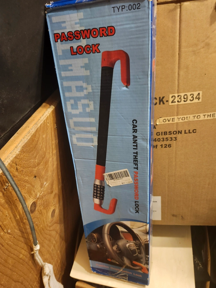Selling a car anti-theft password lock. It's in its original box and ready to go! Keep your car safe and secure with this easy-to-use lock