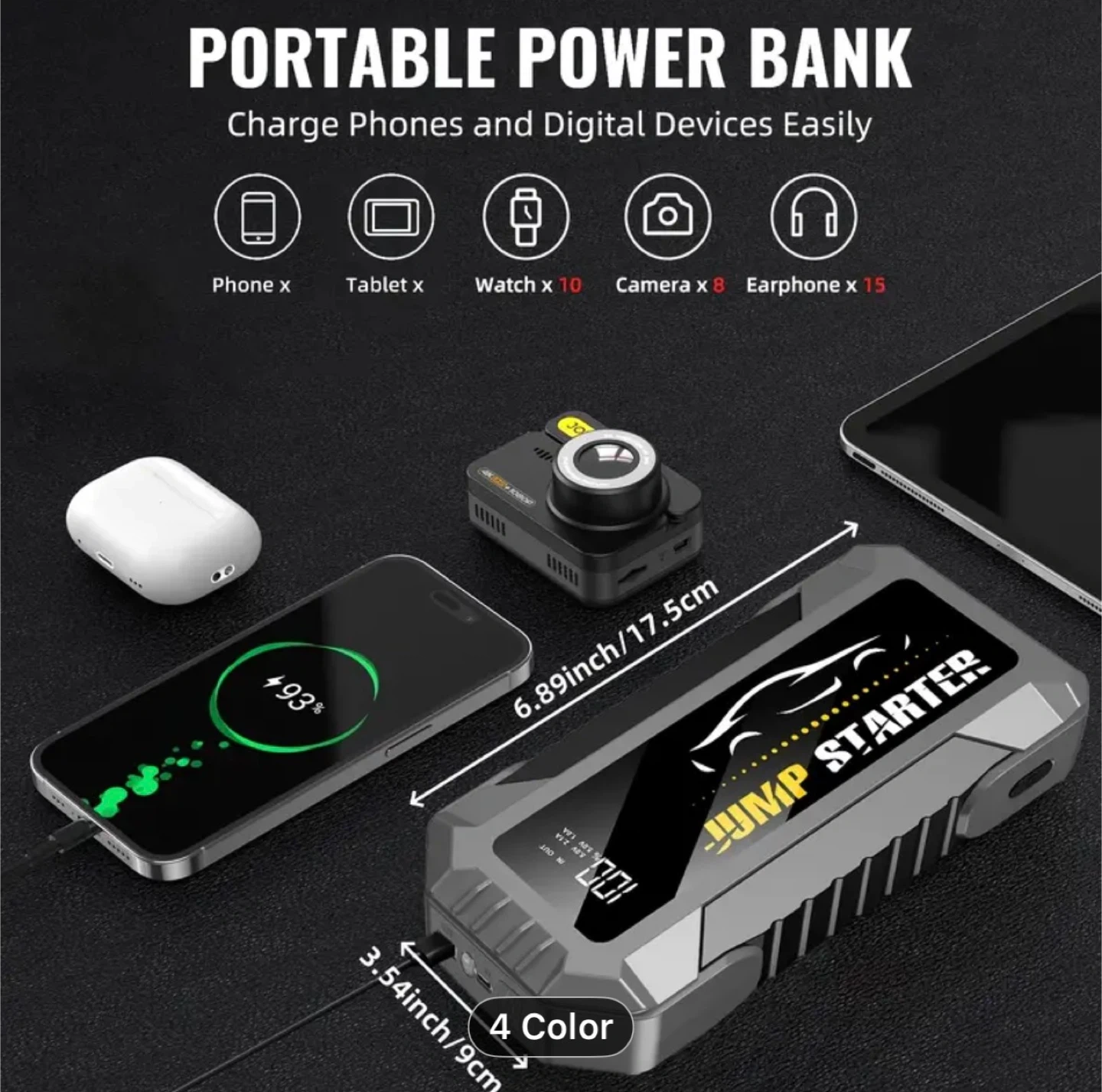 Car Jump Starter, 7000A Peak 29800mAh Car Battery Charger