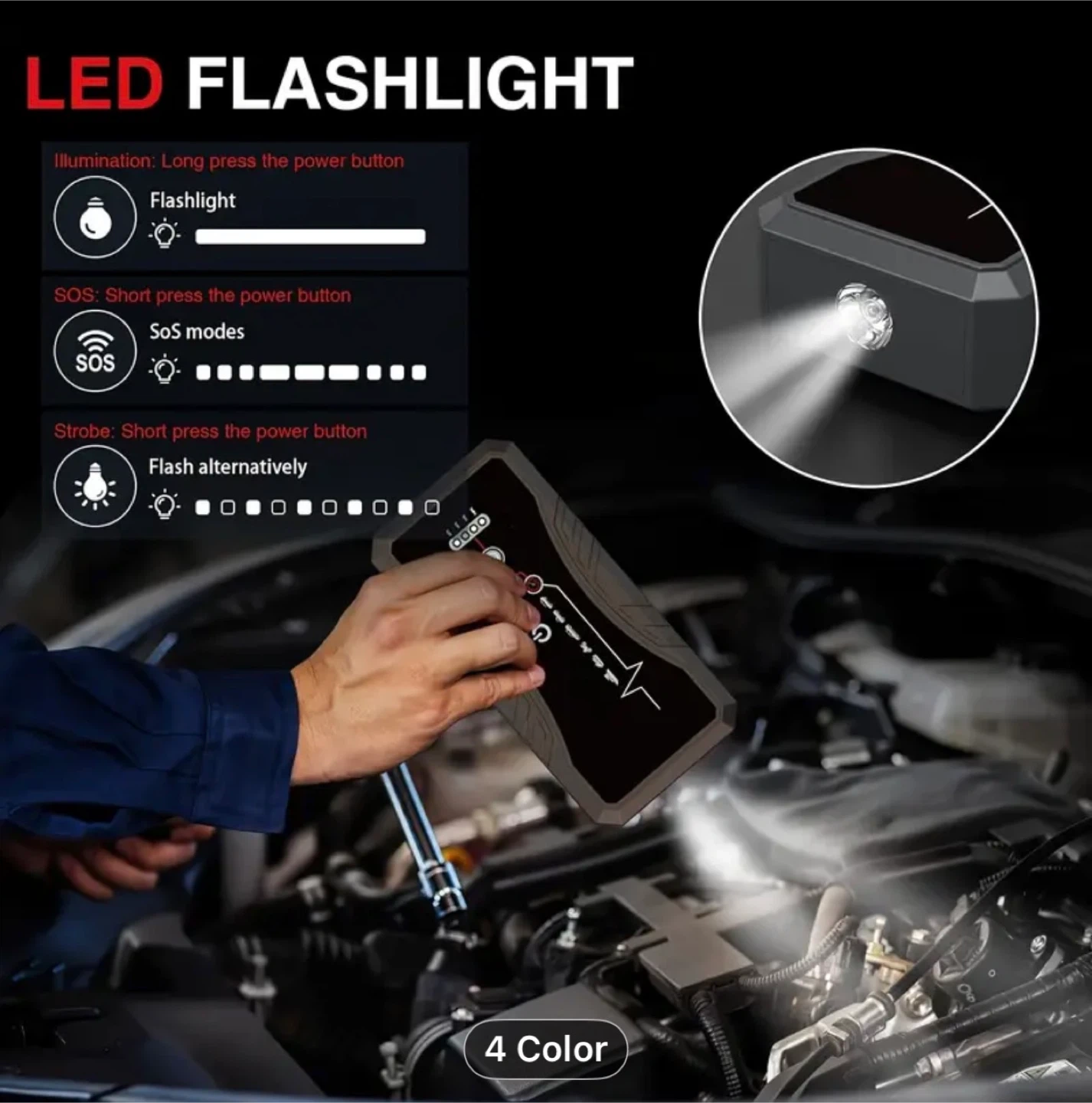 Car Jump Starter, 7000A Peak Car Battery Charger, 12V Jump Box Jumper Battery Pack (up To 2.64gal Gas Or 2.25gal Diesel) With Portable Charger, Emergency LED Light, Escape Safty Hammer, Compass