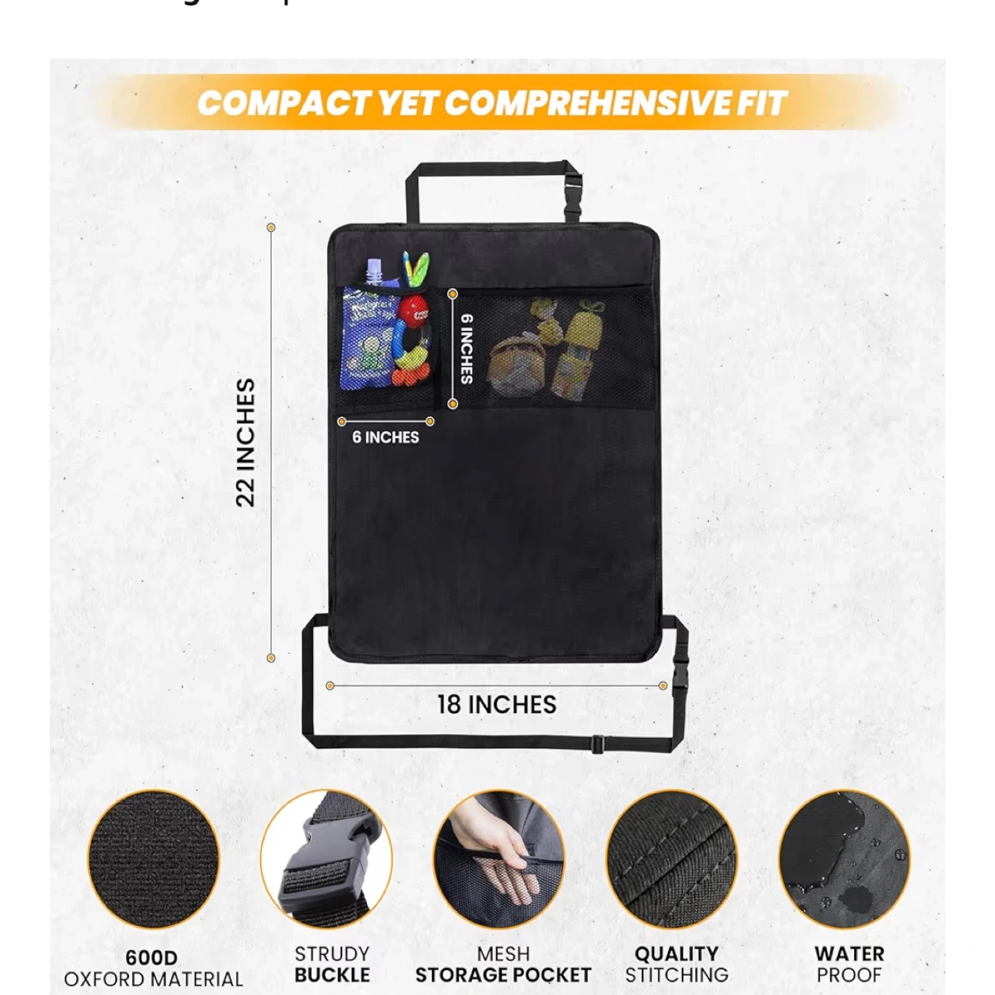 15EcoNour Car Kick Mats Back Seat Protector (2 Pack) | Durable Car Seat Protector for Kids with Storage Pockets, Protection from Dirt, Mud and Scratches | Car Seat Protector for Vehicle Back Seat 🌸 brand new in bag Can open for you to check price firm… KEEP YOUR CAR SEATS CLEAN: Eliminate dirt and mess with our premium car backseat protector which is perfect for families and pet owners, this seat kick protector defends against scratches, muddy shoes, and paw prints. Our innovative anti-slip design ensures it stays securely in place, even on bumpy rides. MULTIFUNCTIONAL ORGANIZATION: The EcoNour kids seat protector not only shields your seats but also functions as a handy back seat organizer. With spacious pockets for toys, snacks, books, water bottles, and drinks, it’s the ideal solution for keeping everything tidy during family trips. SUPERIOR DURABILITY: Crafted from high-quality 600D Oxford fabric, our back of car seat protector measures 22 x 18 inches. This kick mat for baby features reinforced corners that resist curling, ensuring long-lasting use without color transfer onto your seats. EASY TO CLEAN: Our baby seat protector is waterproof and built to withstand the wear and tear from kids and pets, helping to prolong the life of your car seats. Cleanup is a snap, just wipe it down with a damp cloth. SIMPLE INSTALLATION: With sturdy shoulder straps and buckles, this back of seat protector secures firmly in place. Enjoy hassle-free setup—simply pull the car seat protector for back seat over your seat, buckle the top strap around your headrest, and you’re ready for the road!