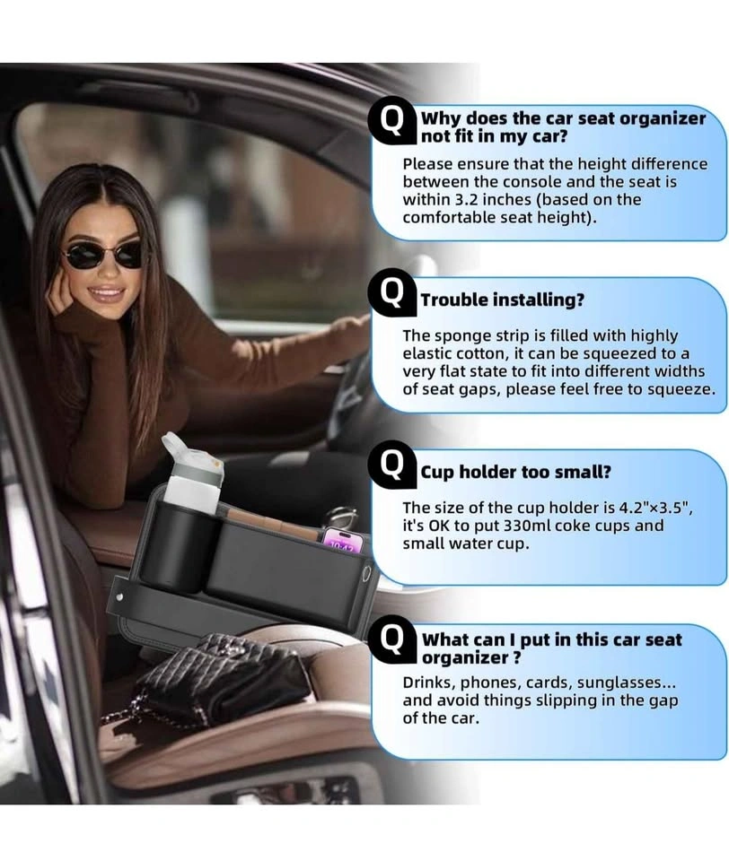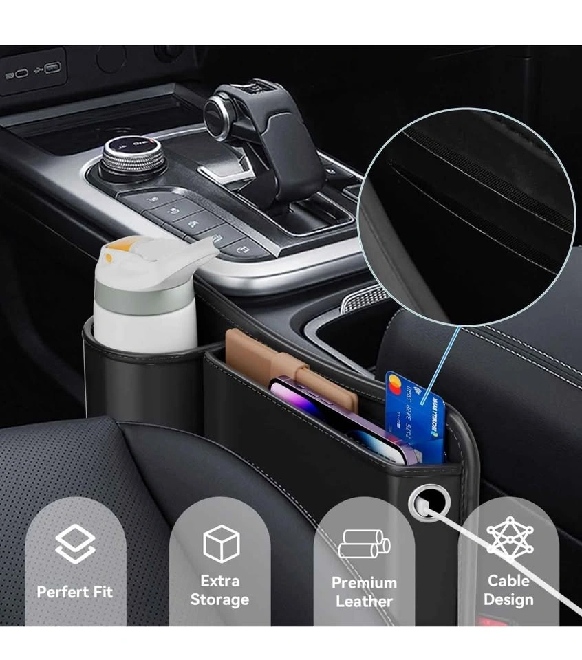 40Car Seat Gap Organizer 2-Pack, Features a Cup Holder Design with a Leather Cup Holder Compartment for Drinks, Phones, and Cards, Equipped with 4 Multi-Functional Hooks, Unisex car Storage Accessories