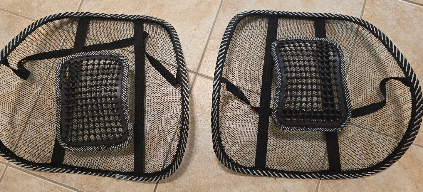 I'm selling a car seat lumbar support with mesh back. It's in great condition and provides excellent support for your back while driving. It is designed to improve posture and reduce strain during long drives. The mesh material allows for breathability, keeping you cool and comfortable. Easy to install and fits most car seats!