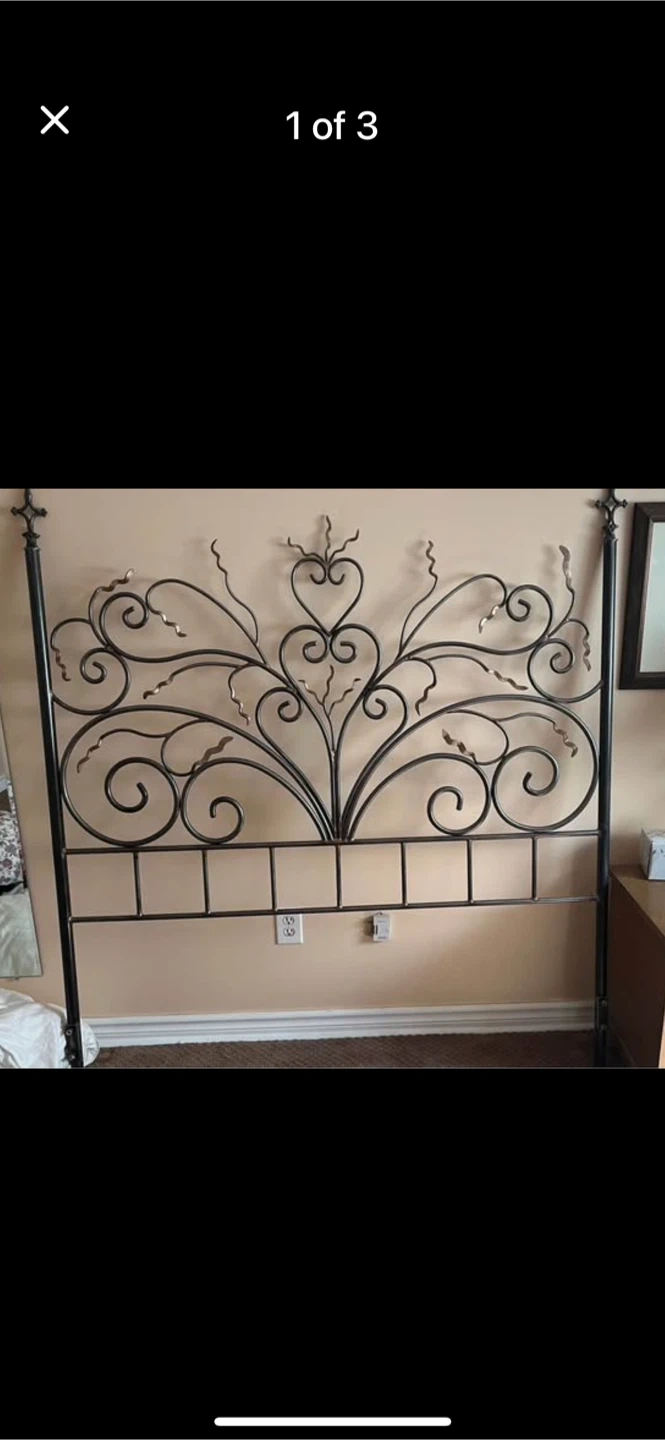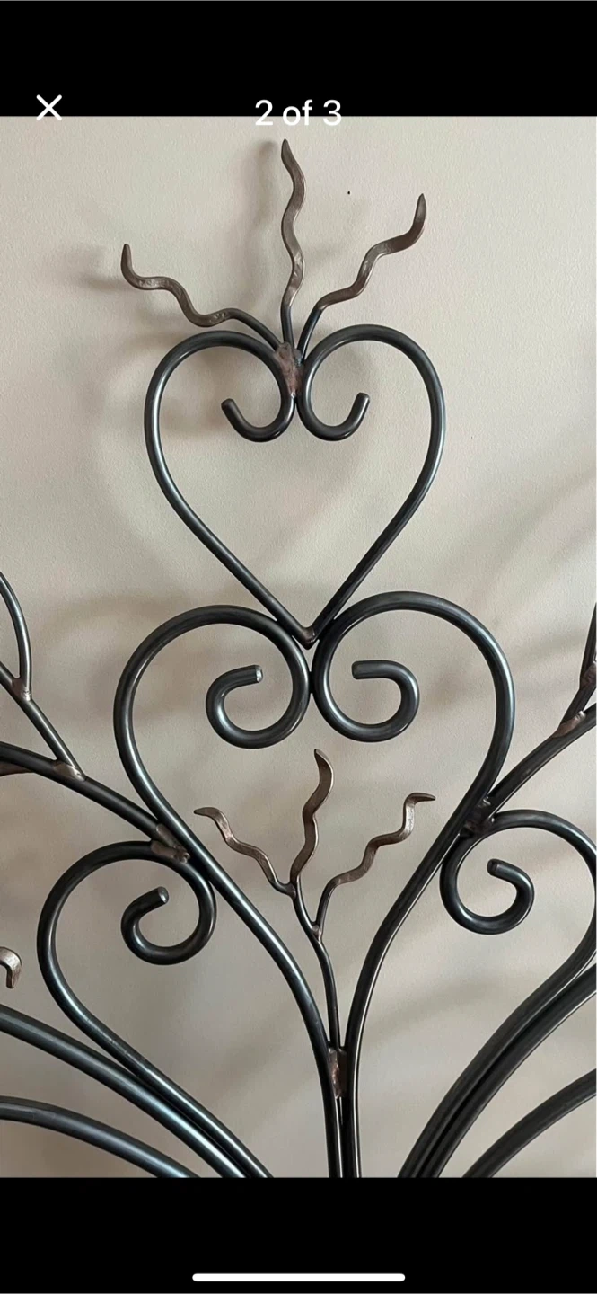 10Selling a beautiful wrought iron headboard, perfect for a queen-sized bed. It features a lovely design and is in great condition. It will add a touch of elegance to any bedroom! Made by seller, one of a kind.
