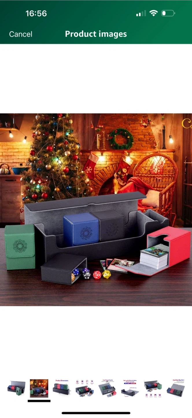 21This is a card storage box for trading cards. It comes with multiple compartments and boxes for storing your cards and dice. The box is in great condition and ready for a new home!