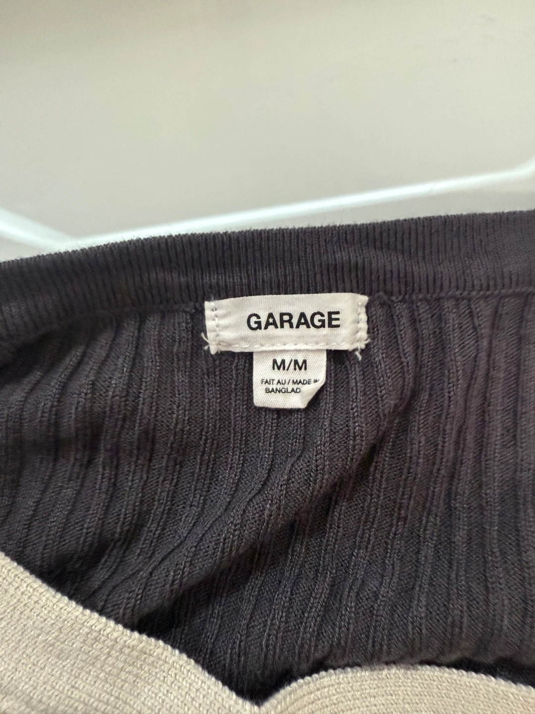 Je vends un cardigan de marque Garage, de taille M. Il est fait au/made in Banglad. Le cardigan est de couleur deux tons.