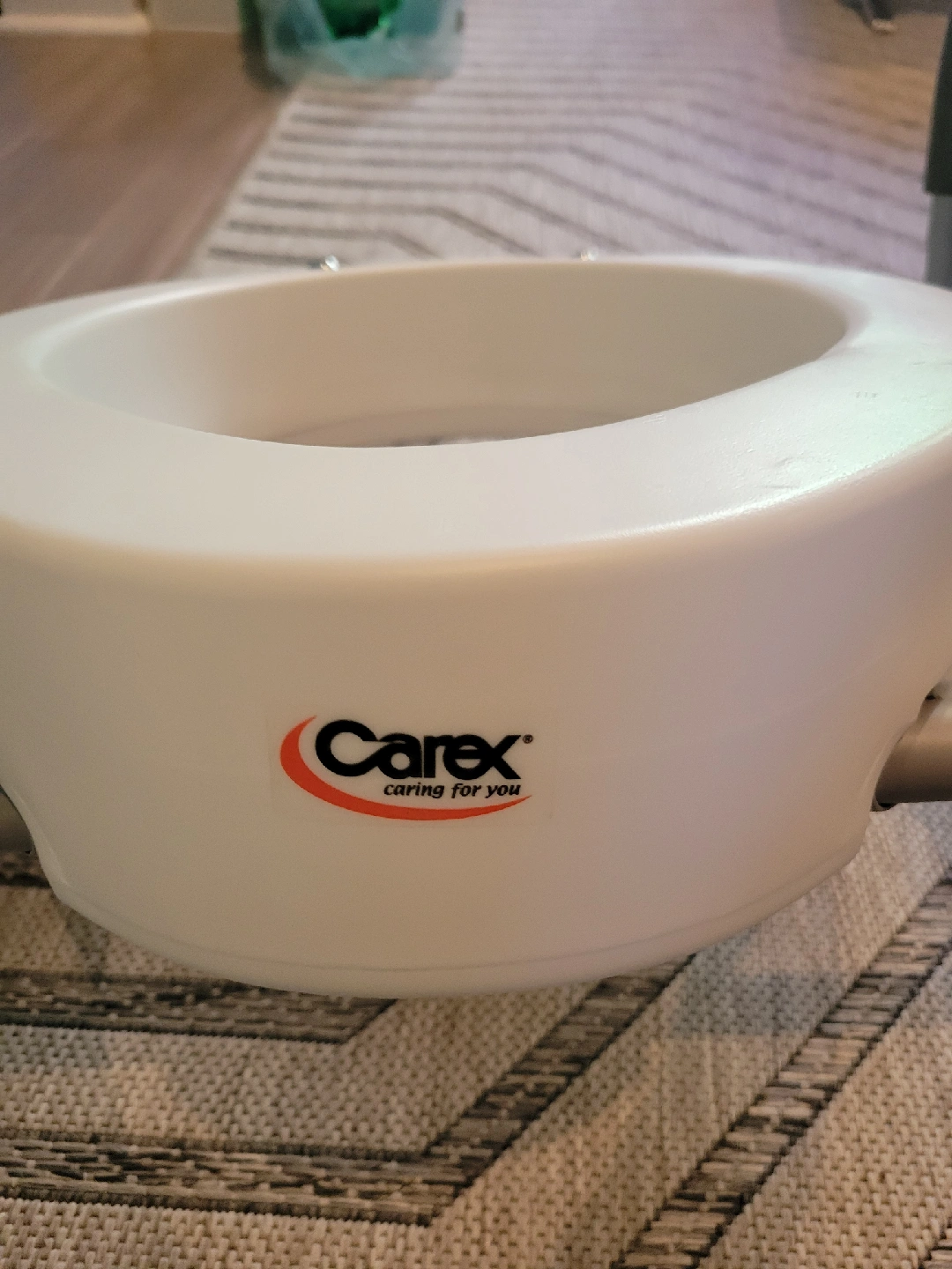 Selling a Carex toilet seat riser with handles. It's nee and never been used. Provides added safety and support when getting on and off the toilet.