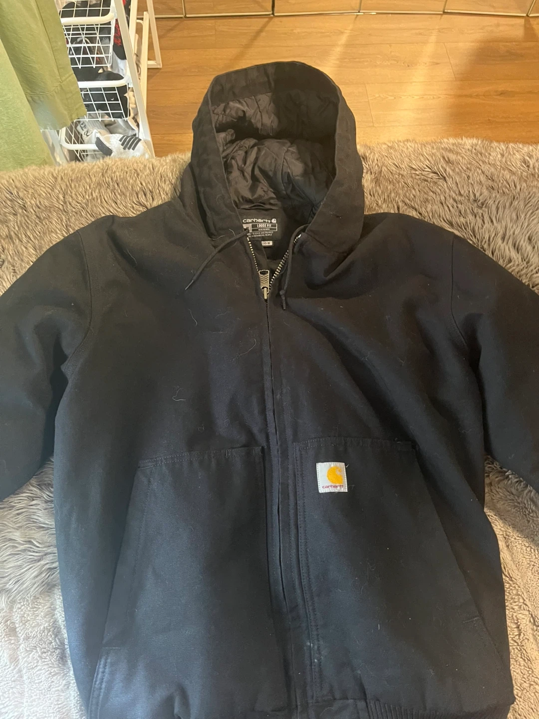 5Selling a Carhartt J130-M jacket in black! It's a loose fit and size medium. This jacket is built to serve and protect all hardworking people. Great for keeping warm on those chilly days!